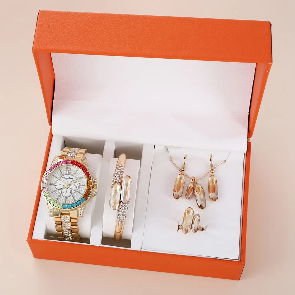 - Elegant Jewelry Pieces: Ring, necklace, and earrings designed to coordinate with the watch.