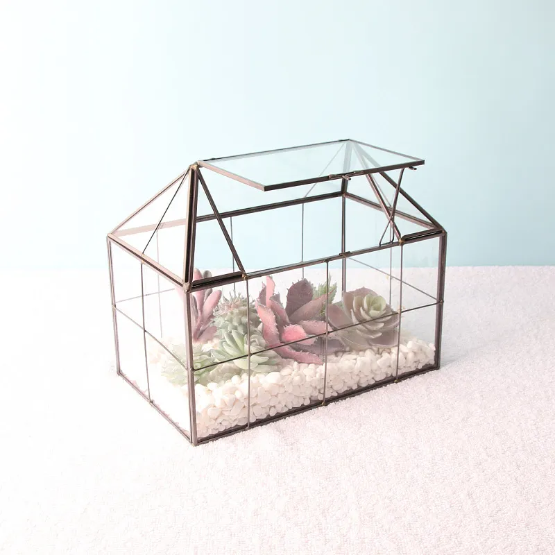For a unique and stylish way to display your plants, the Grid House Shape Flip Geometry Glass Flowerpot is the perfect