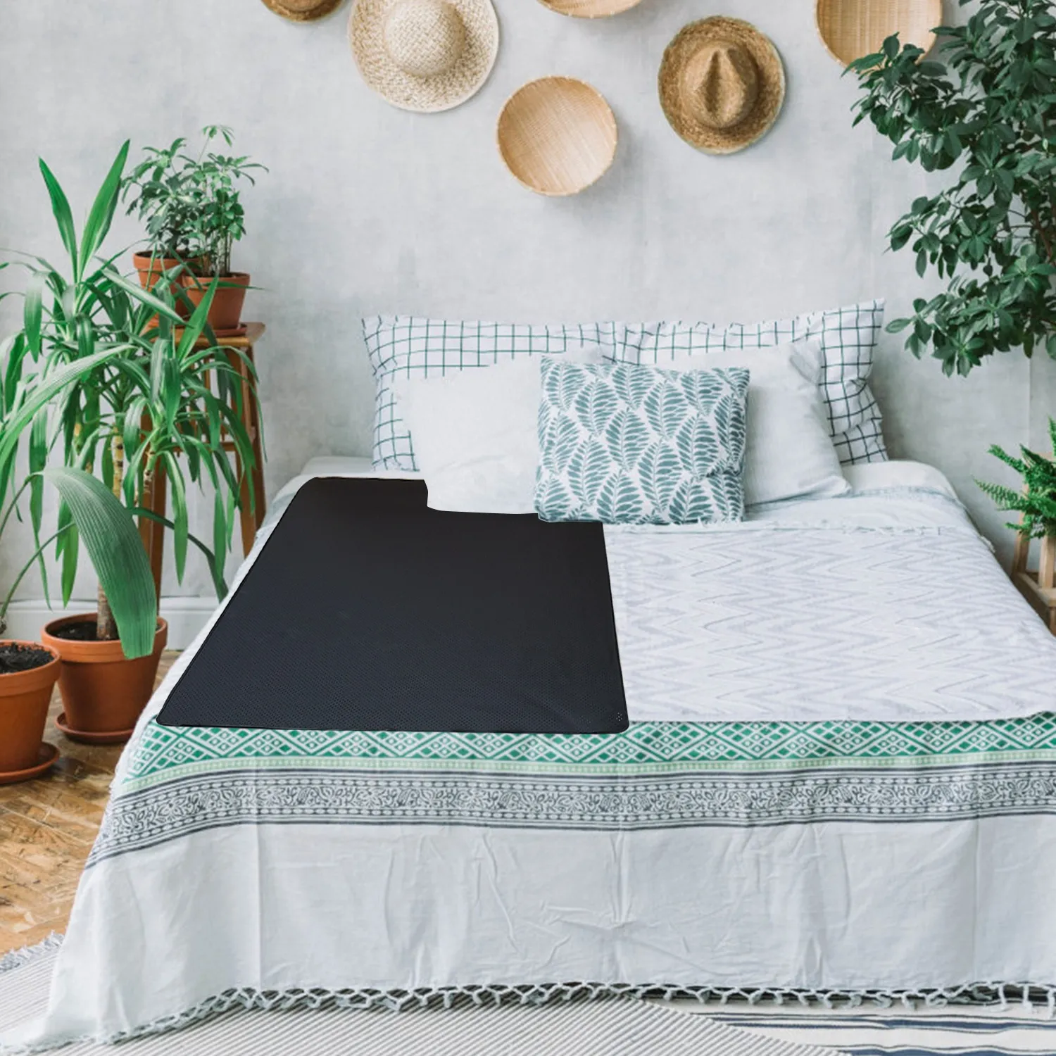 Place on Your Bed: Spread the grounding sheet over your mattress just like a regular bed sheet, ensuring that the