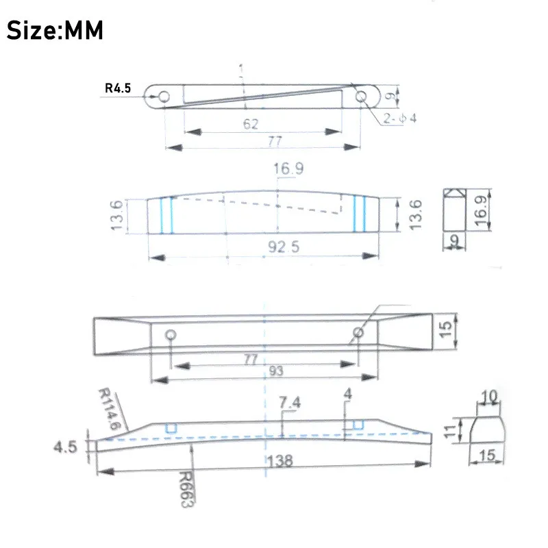Our Ebony Guitar Bridges provide a stable foundation for your strings, improving sound transmission and increasing sustain. The dense, hard properties of ebony allow the bridge to transfer more energy from the strings to the guitar’s body, enhancing overall tone and projection. These bridges are carefully crafted to match various guitar types, ensuring a snug fit and optimal performance.