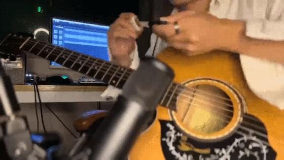 switch the guitar pick to the bow immediately.