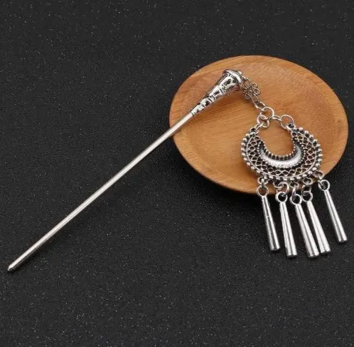 A peak at bun of homemade alloy zinc and color silver . This hair