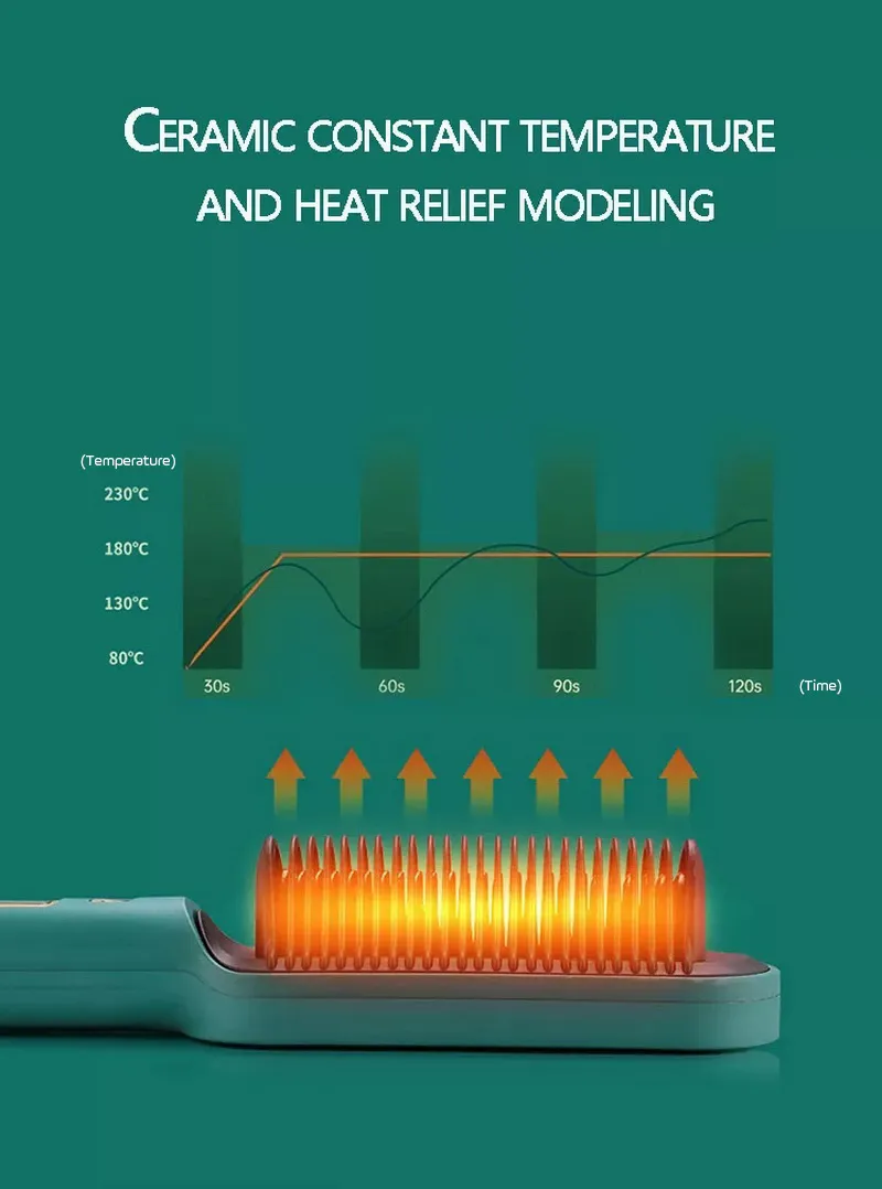 The Hair Straightening Styler combines advanced heating technology with ceramic-coated plates to provide smooth and consistent results without damaging your hair. It heats up quickly, reaching the ideal temperature for straightening, while the ceramic plates help to distribute heat evenly and prevent hot spots. This ensures that each strand of hair is straightened gently and effectively without causing unnecessary damage.