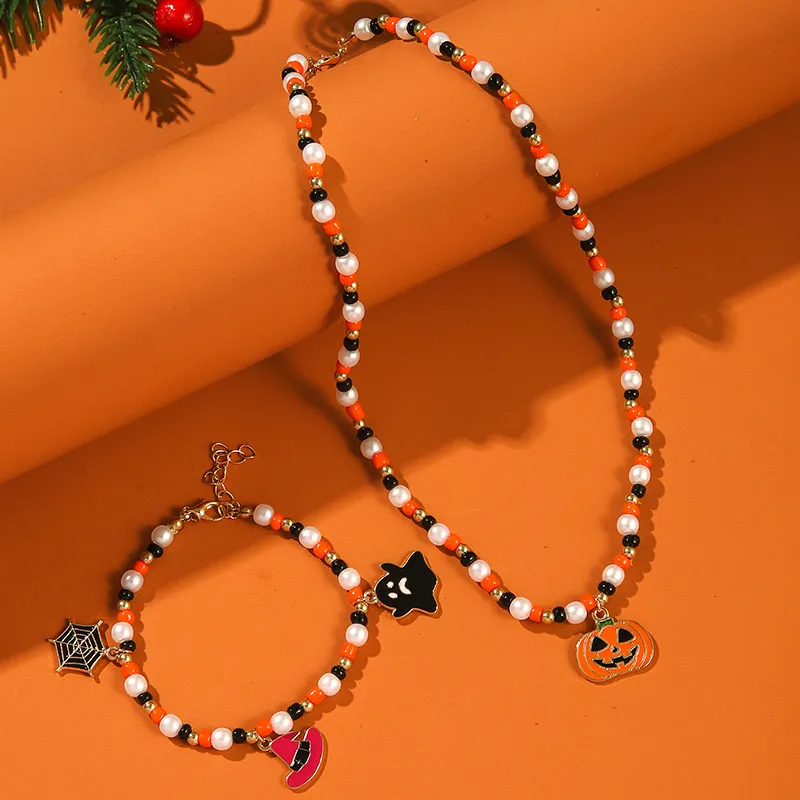 Halloween Ghost Pumpkin Necklace Horror Bracelet Necklace Jewelry