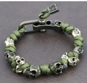 Halloween Jewelry Skull Premium Paracord Bracelet Stylish Skull Premium Paracord Bracelet Men's Handmade Punk Hiphop Woven Bracelet Creative