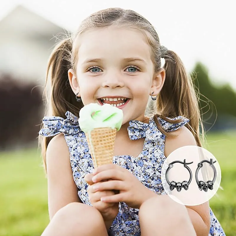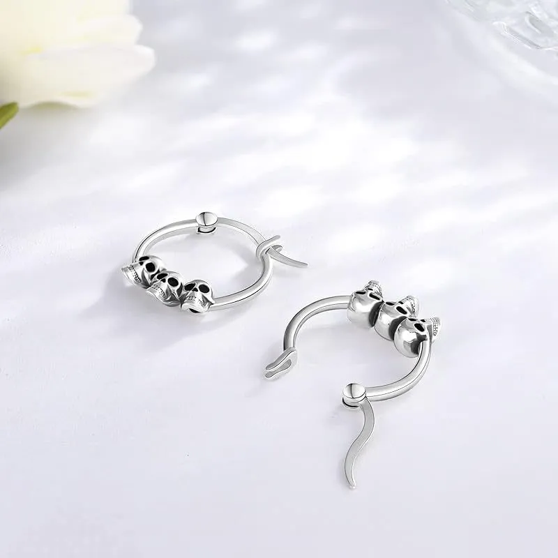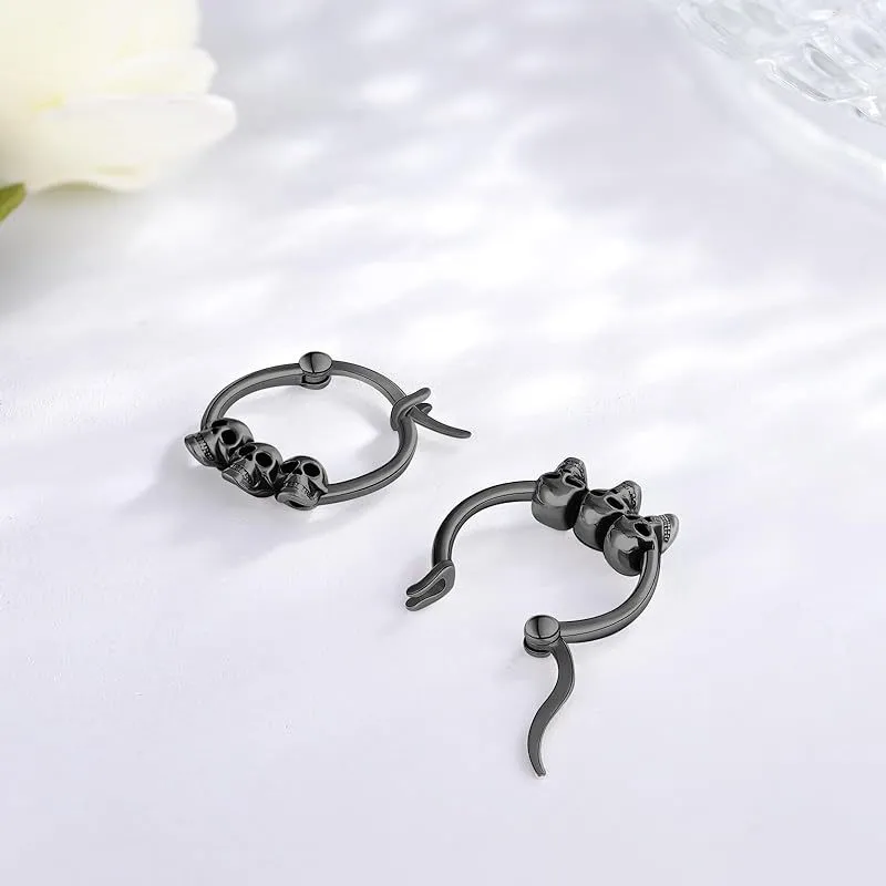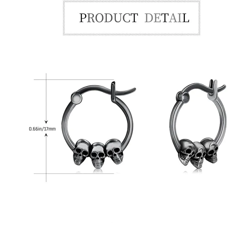 - ♥Skull Earrings Size♥ 17mm/0.67in, safely secured by click-top closures. Skull hoop earrings, Lightweight and Comfortable for daily wearing.