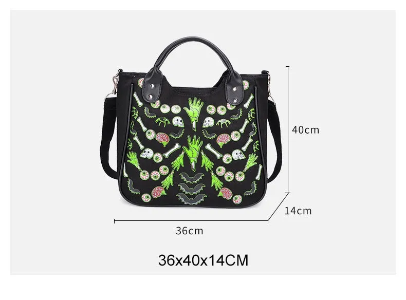 The eye-catching skull print adds a spooky yet stylish touch, making this bag a standout accessory for Halloween and beyond.