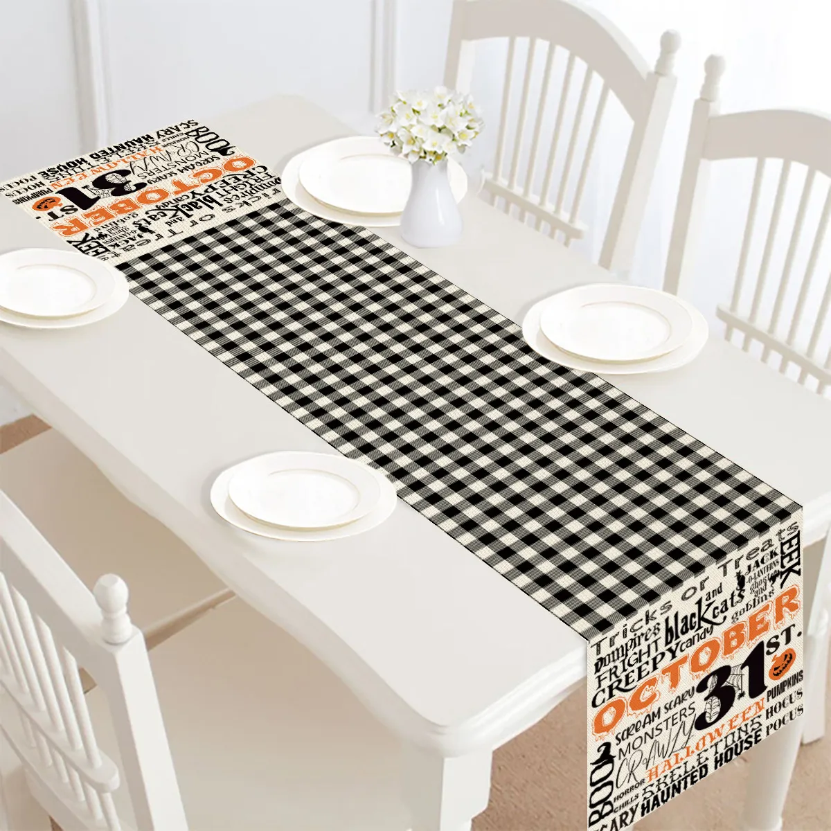 Crafted from high-quality polyester or cotton-blend fabric, the runner is soft to the touch, durable, and resistant to stains—ensuring it holds up throughout the spooky season. Its versatile design complements a variety of table shapes, from long dining tables to coffee or console tables. The runner is also perfect for layering with centerpieces, such as candelabras, jack-o'-lanterns, or decorative pumpkins, for a truly enchanting look.