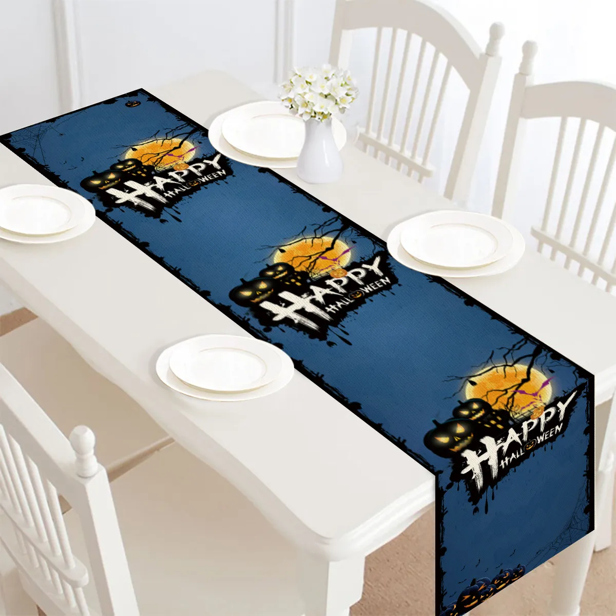 Transform your dining table into a festive masterpiece with this Halloween Table Runner, the perfect blend of spooky charm and elegant style. Designed with seasonal motifs like pumpkins, bats, spiders, or eerie haunted houses, this table runner adds a touch of Halloween spirit to any meal setting. Whether you're hosting a Halloween party, enjoying a themed dinner, or simply want to create a festive atmosphere, this decorative piece makes a delightful addition to your dining area.