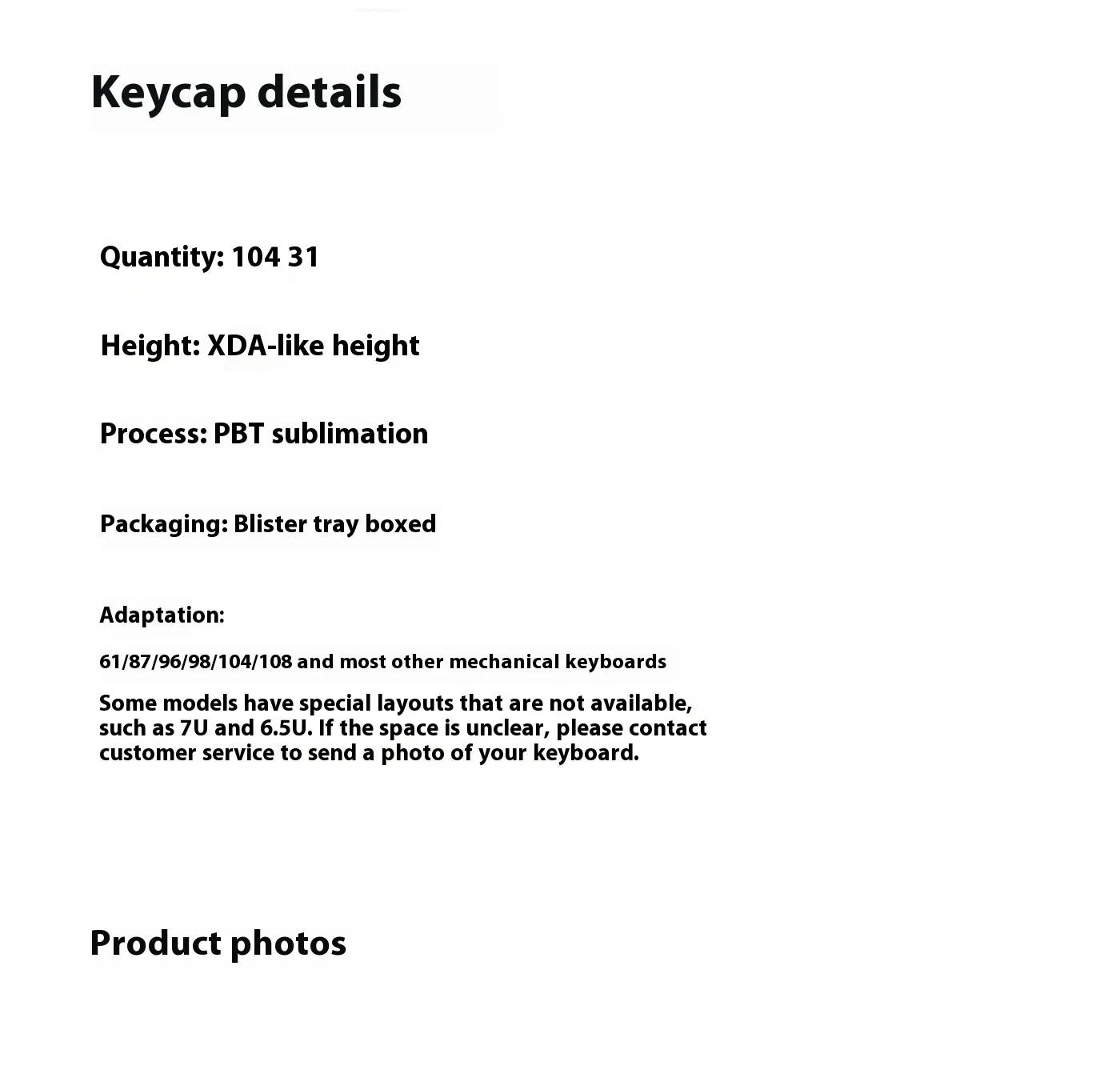- Full Keycap Set – Covers 60%, 65%, 75%, TKL, and full-size keyboards.