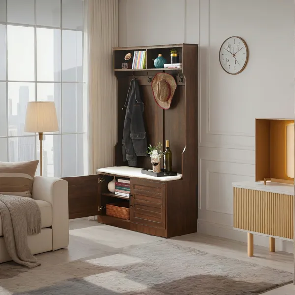 Multiple Hooks: Equipped with several hooks or pegs for hanging coats, bags, hats, and scarves, allowing you to keep your