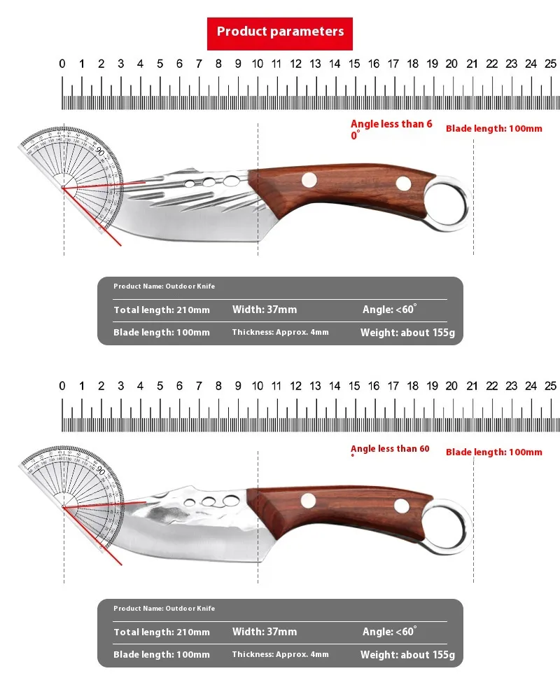 Crafted with high-quality materials, this knife is designed to last. The hand-forged stainless steel blade is strong enough to withstand heavy-duty tasks, while the ring handle adds a layer of resilience and comfort. The knife's durable design makes it resistant to wear and tear, ensuring it remains a reliable tool for years to come.