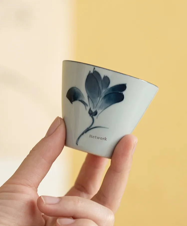 The teacup's design draws inspiration from the classic blue and white porcelain, featuring delicate hand-painted patterns that evoke a sense of nostalgia and elegance. The intricate motifs not only enhance the visual appeal but also reflect the deep cultural significance of tea in Chinese traditions.
