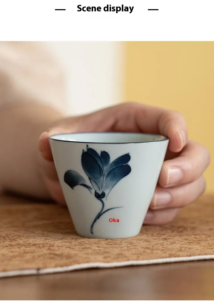 Color: ancient blue white tea cup-magnolia-bamboo-hat Cup, ancient blue white tea cup-Magnolia Cup