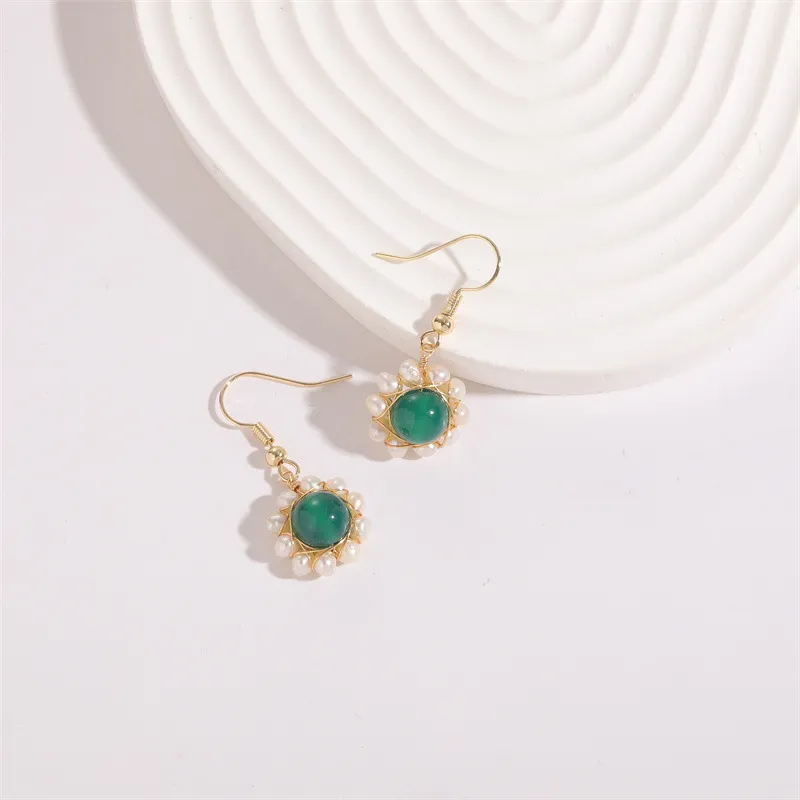 Hand-wound Water Pearl Earrings Natural Stone Emerald Green