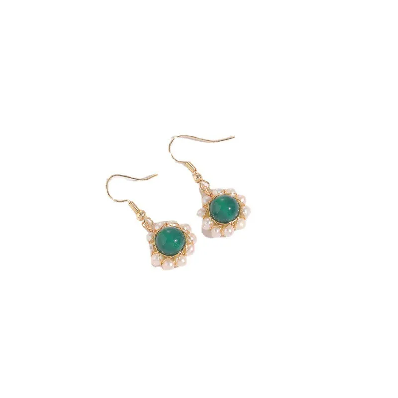 Hand-wound Water Pearl Earrings Natural Stone Emerald Green