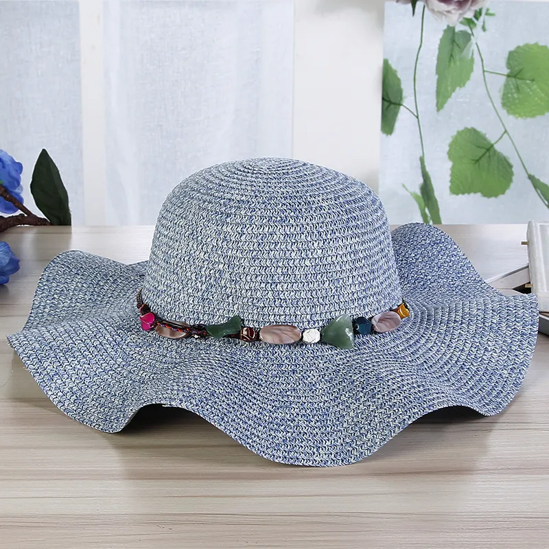 Hand-Woven Read Strange Stone Decorative Straw Hat Woman