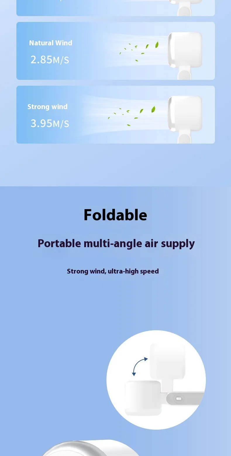 With multiple speed options, this mini fan lets you control the intensity of the airflow. Whether you need a light breeze or a more powerful gust of air, you can adjust the speed to suit your needs. This customization provides a tailored cooling experience, so you can enjoy the perfect breeze in any situation.