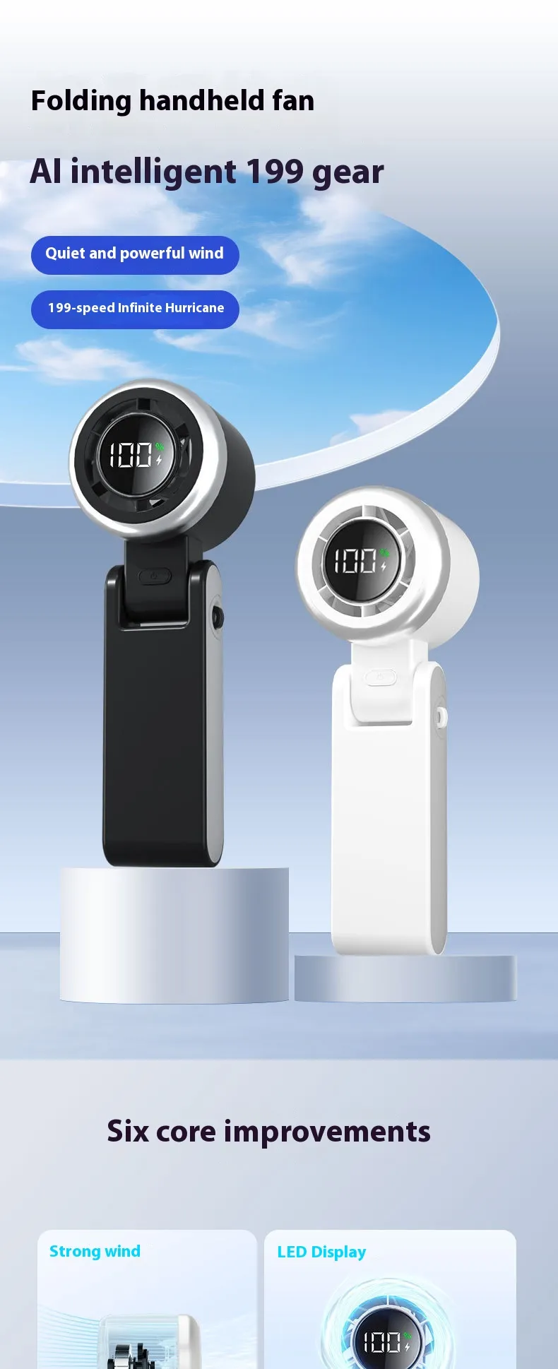 Handheld High-Speed Mini Little Fan Foldable Handheld Digital Display Fan