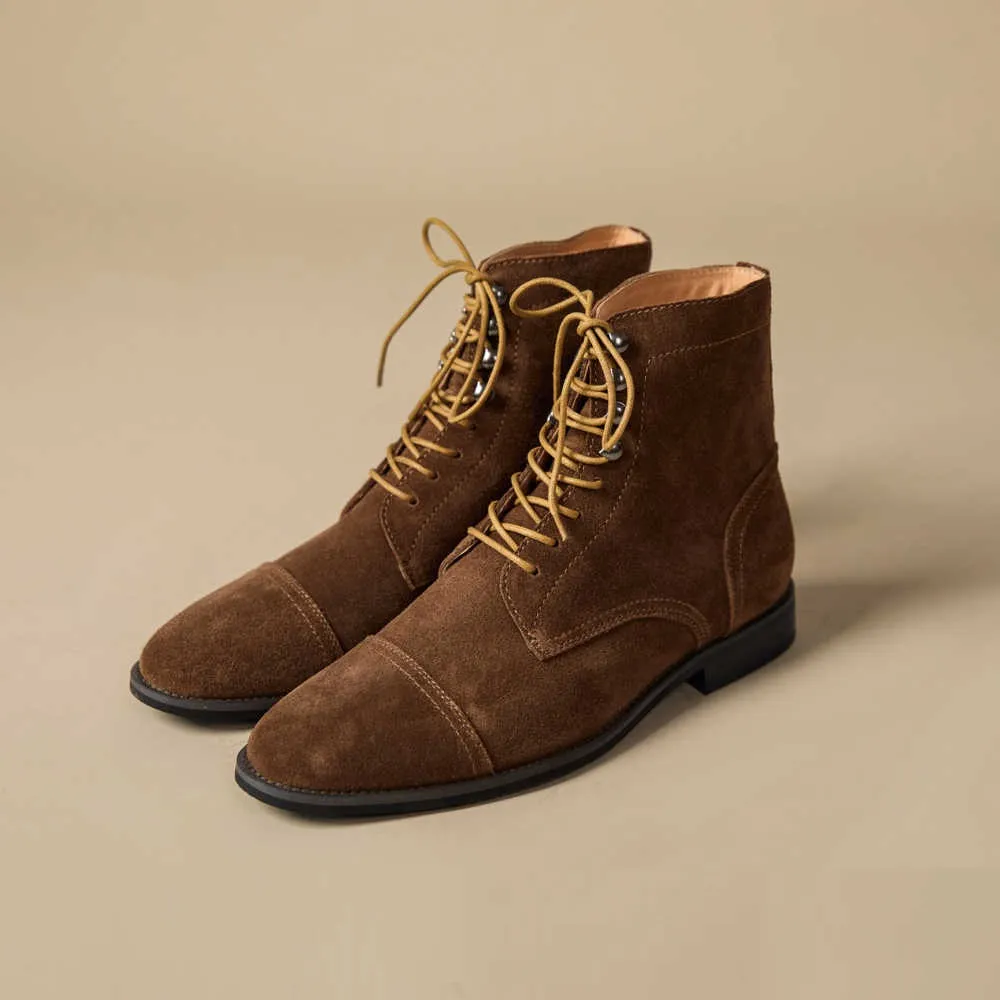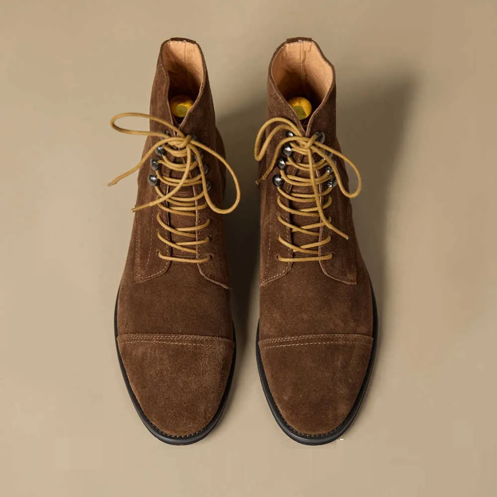 Handmade High-top Retro Men's Suede Genuine Leather Elevator Shoes