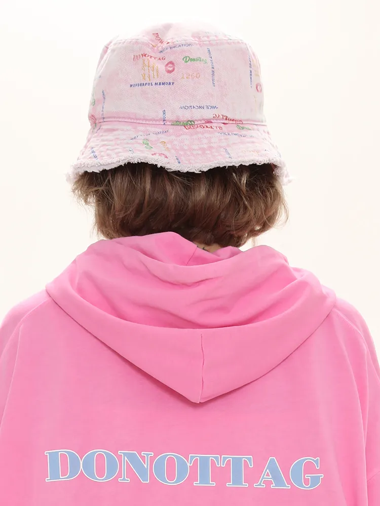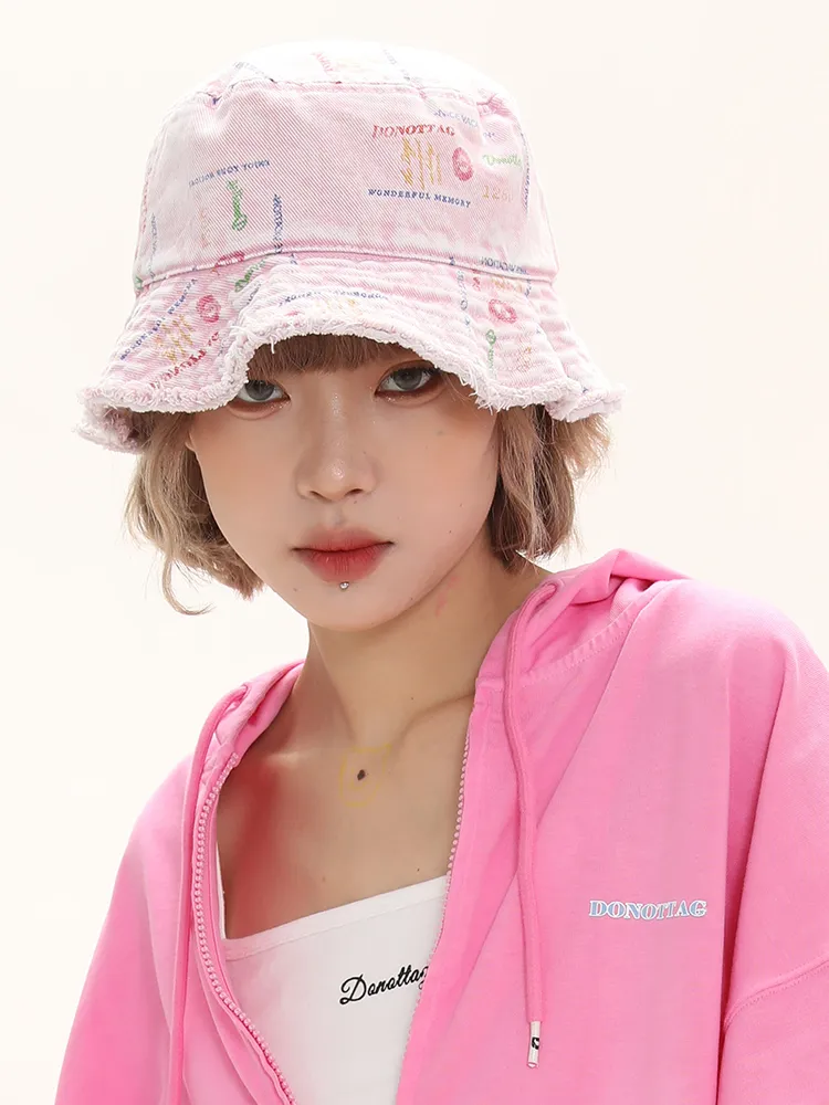 Handmade Raw Edges All Over Print Color Denim Bucket Hat Versatile