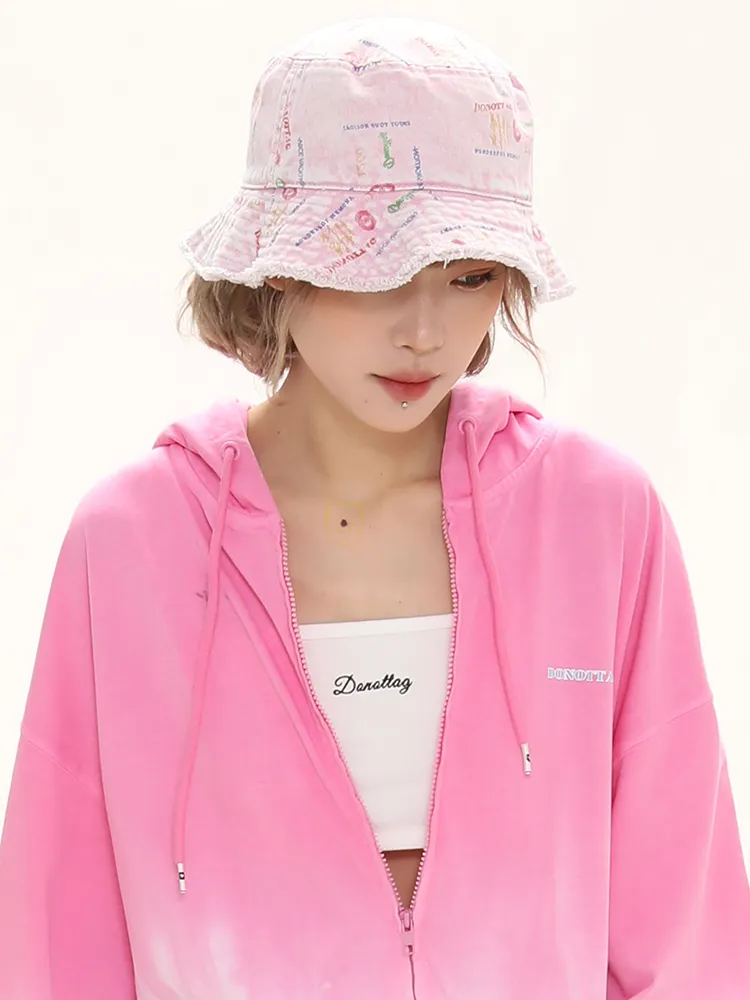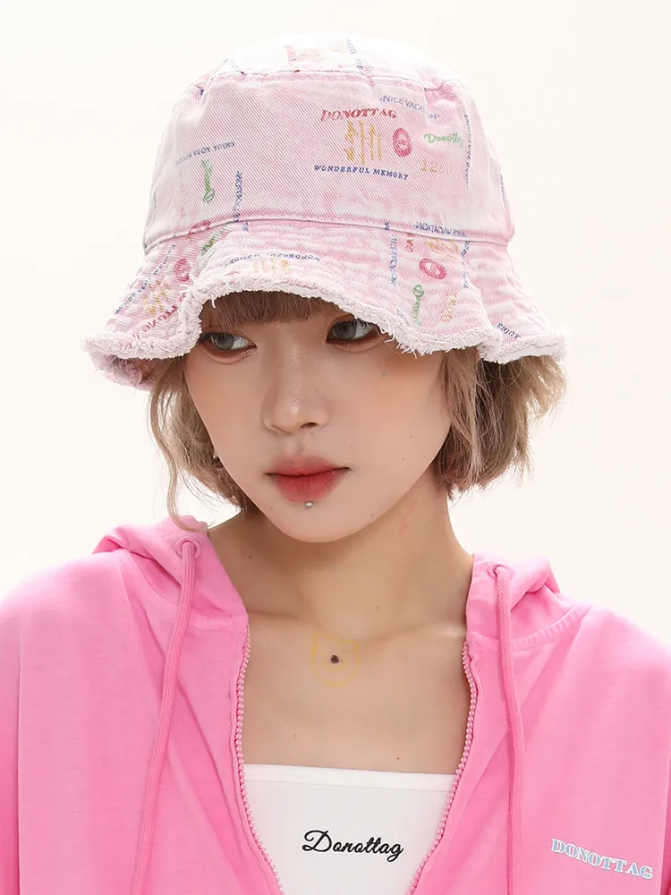 Handmade Raw Edges All Over Print Color Denim Bucket Hat Versatile