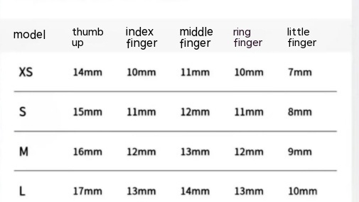 Specifications: extra small XS, small size S, medium M, large L