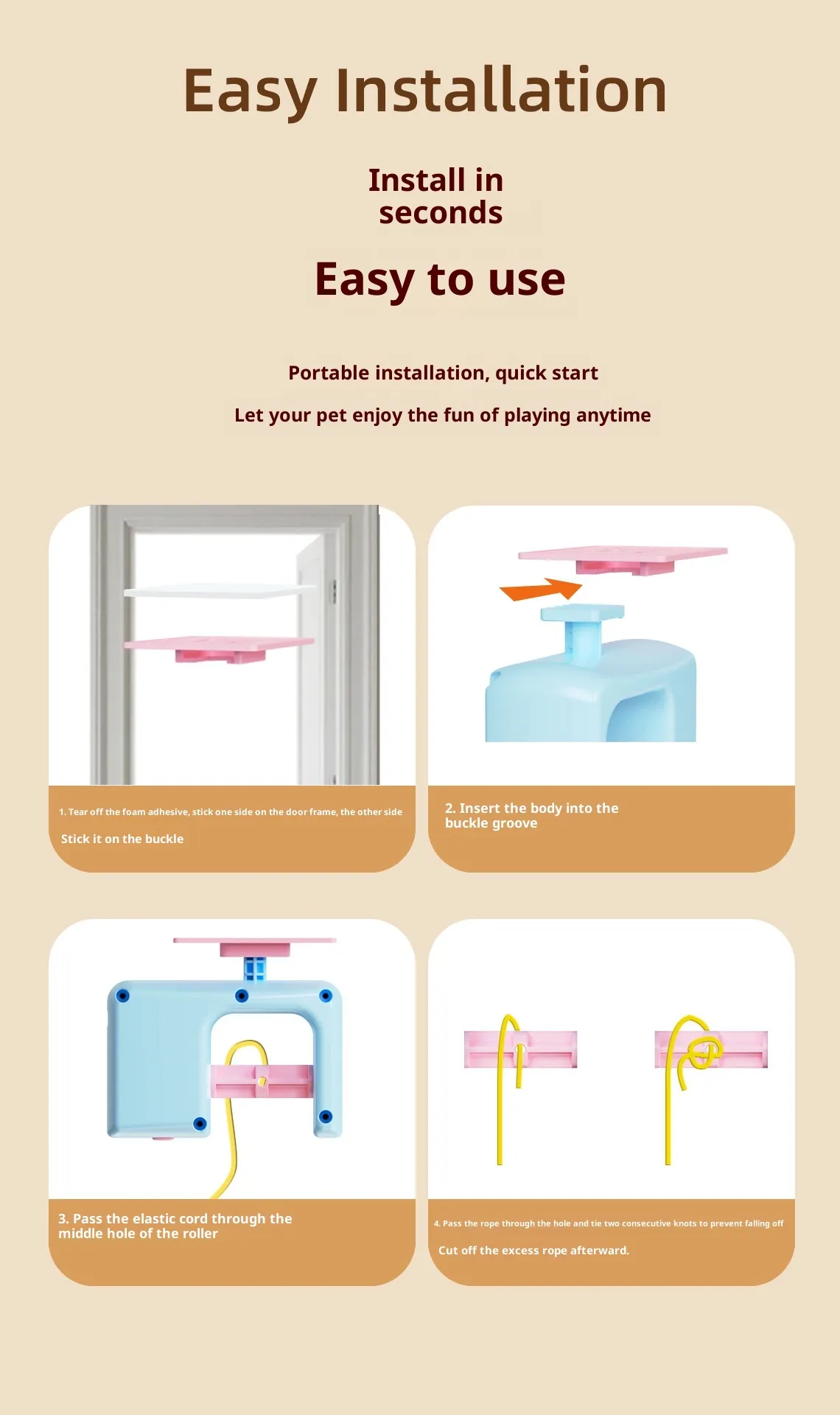 The toy is also easy to install and reposition, allowing owners to change play locations or rotate elements for renewed interest. Its lightweight design means it won’t strain door frames, while secure hanging hooks ensure stability during vigorous play. Whether used as a daily entertainment tool or a supplemental companion toy, the Hanging Door Cat Toy adds engaging movement and fun to indoor cat routines.