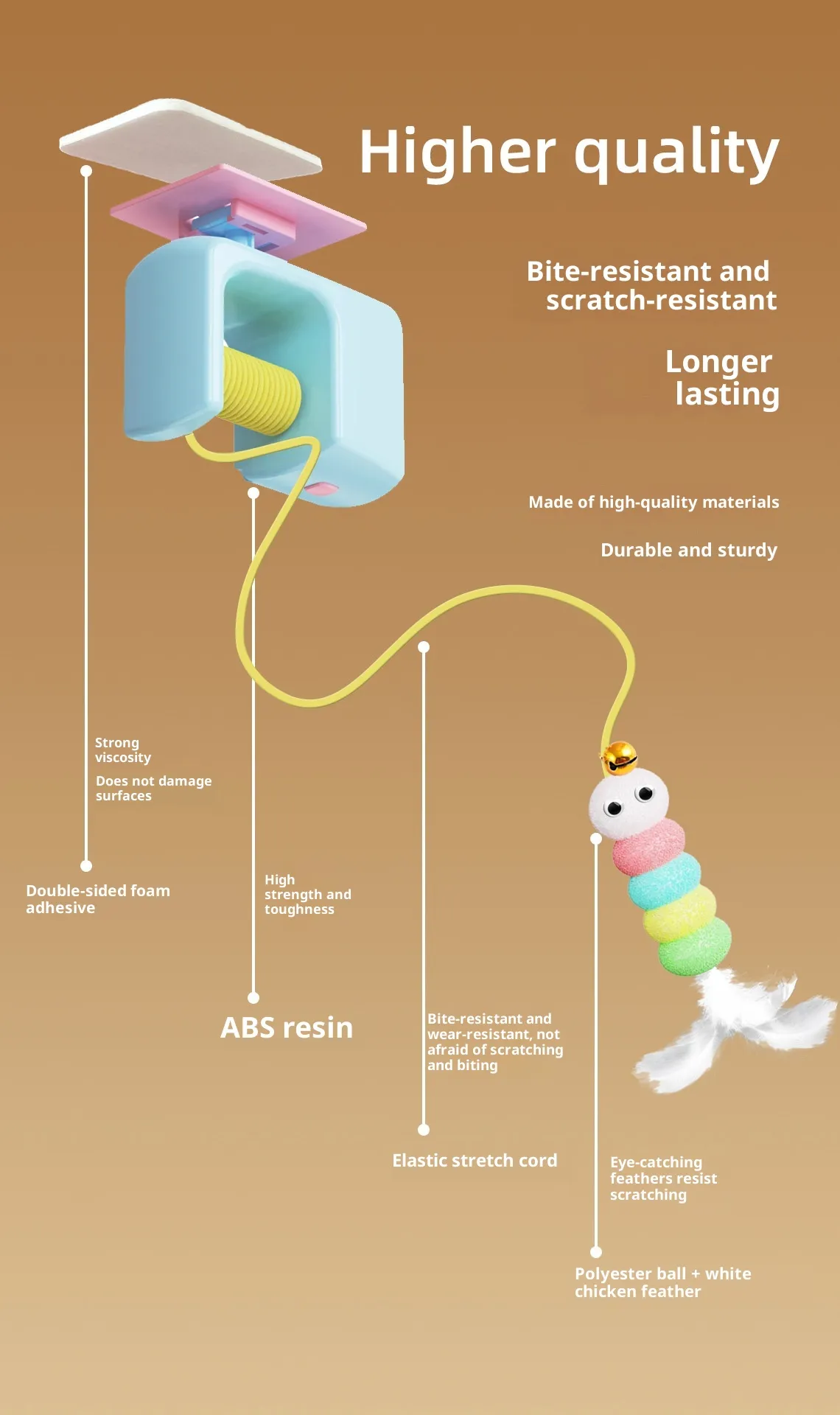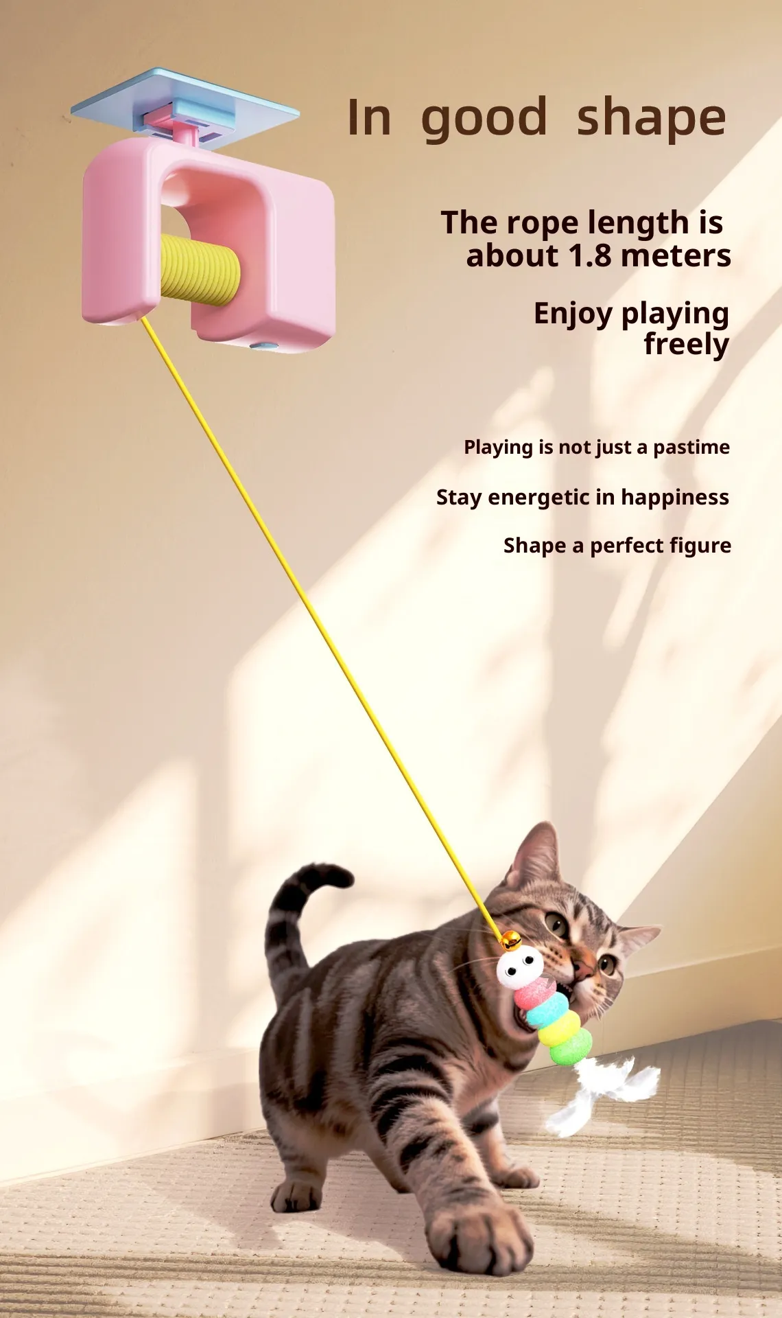 【Adjustable Elastic Cord 】 Smart, Flexible Setup, This hanging cat toy features a stretchable cord that adjusts to different heights—so your cat can switch up the challenge or keep things fresh. The built-in smart sensor means your cat is in control. The moment they touch it, the toy comes alive—spinning, swinging, teasing. Whether you’re working, cooking, or relaxing, your furry friend stays active, happy, and occupied.