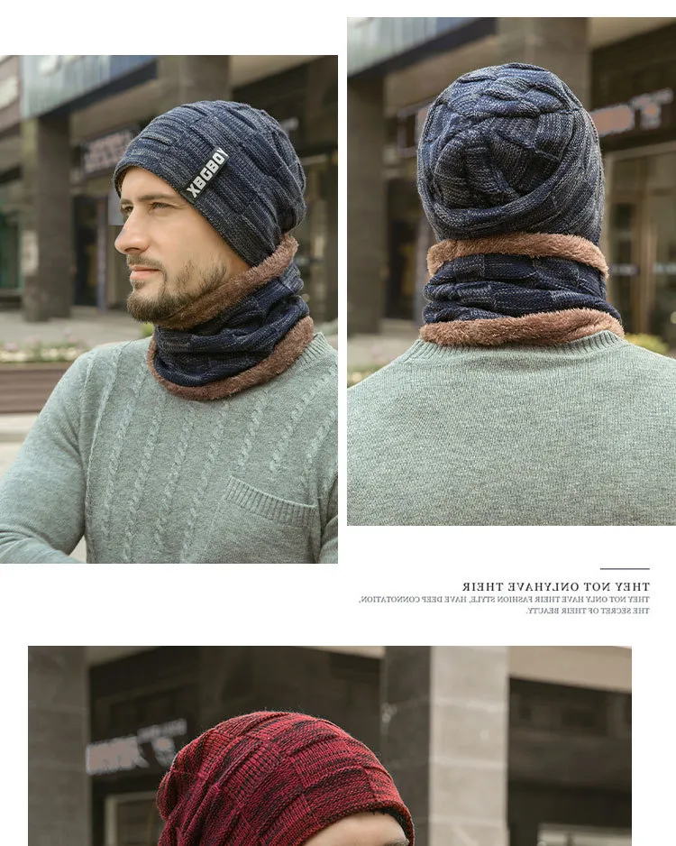Hat collar set plus velvet knit hatHat collar set plus velvet knit hat