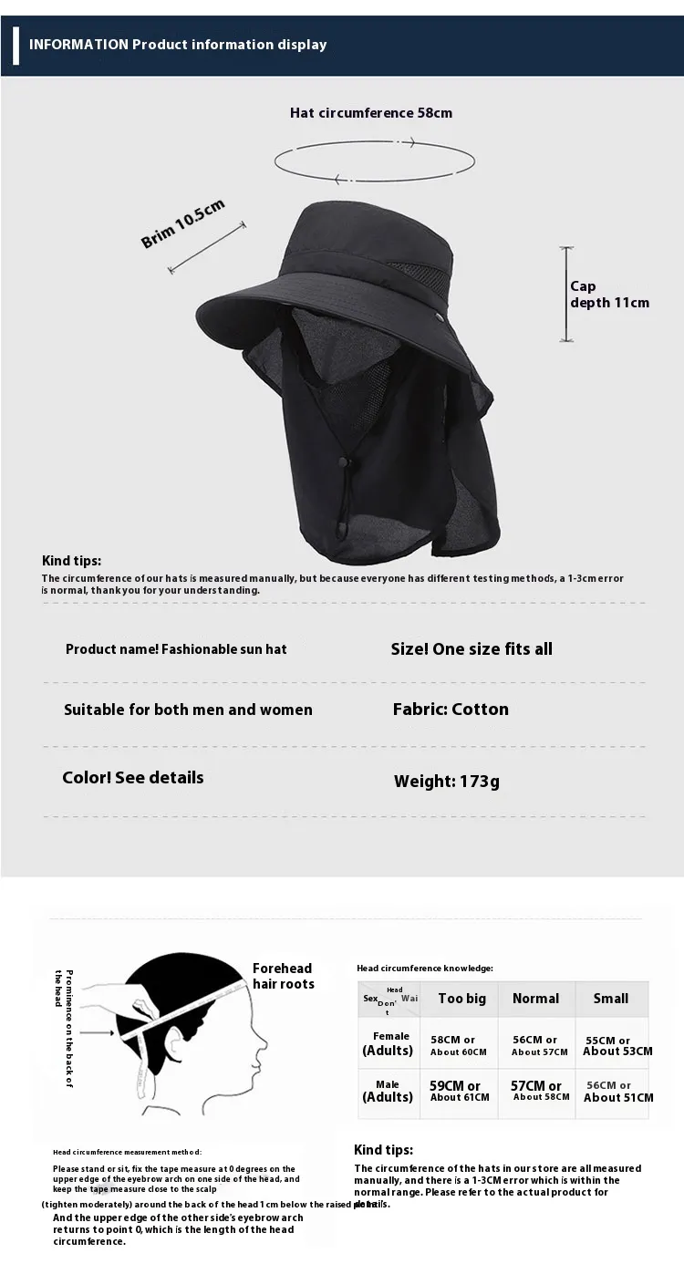 The Hat Men's Sun-shade Fisherman Hat Big Brim Sun-proof Fishing Hat is the ultimate accessory for outdoor enthusiasts, especially fishermen, who want to stay cool, comfortable, and protected from the sun. With its wide brim and sun-proof design, this hat offers excellent coverage for your face, neck, and ears, ensuring you're fully shielded from harmful UV rays. Made with high-quality materials, this fishing hat is perfect for long days spent outdoors, whether you're on a fishing trip, hiking, or enjoying any other outdoor activity in the sun.