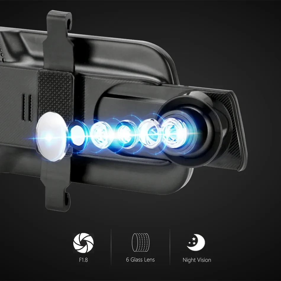 HD 1080p Dual Lens Rearview Mirror Recorder