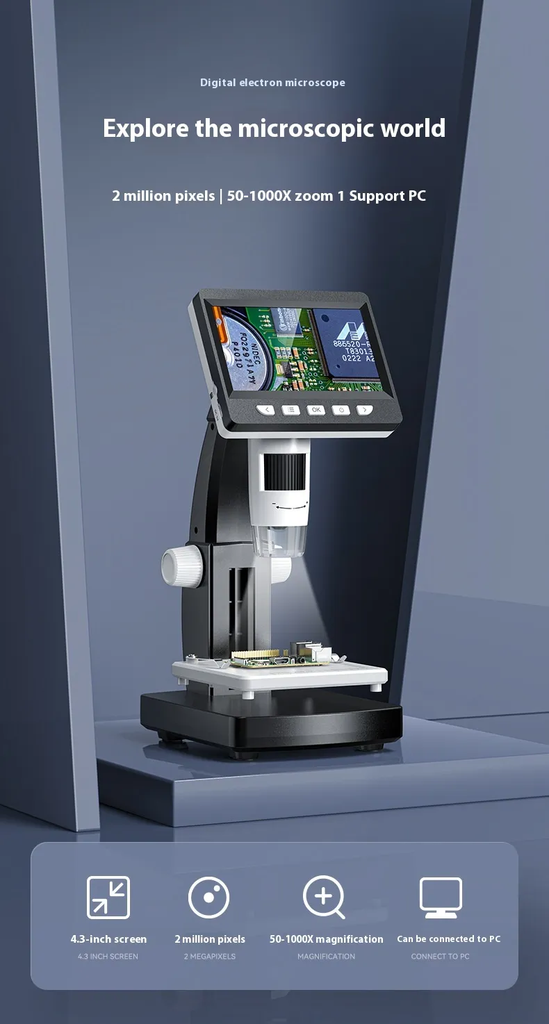 The HD Mobile Phone Repair Microscope With Screen is a must-have tool for anyone involved in mobile phone repairs, offering clear, precise magnification to ensure flawless fixes every time. Designed to help technicians and DIY enthusiasts repair mobile phones, tablets, and other small electronic devices, this microscope provides high-definition visuals, making it easier to spot even the smallest details. With an integrated screen for real-time viewing, you can repair your devices with confidence and accuracy.