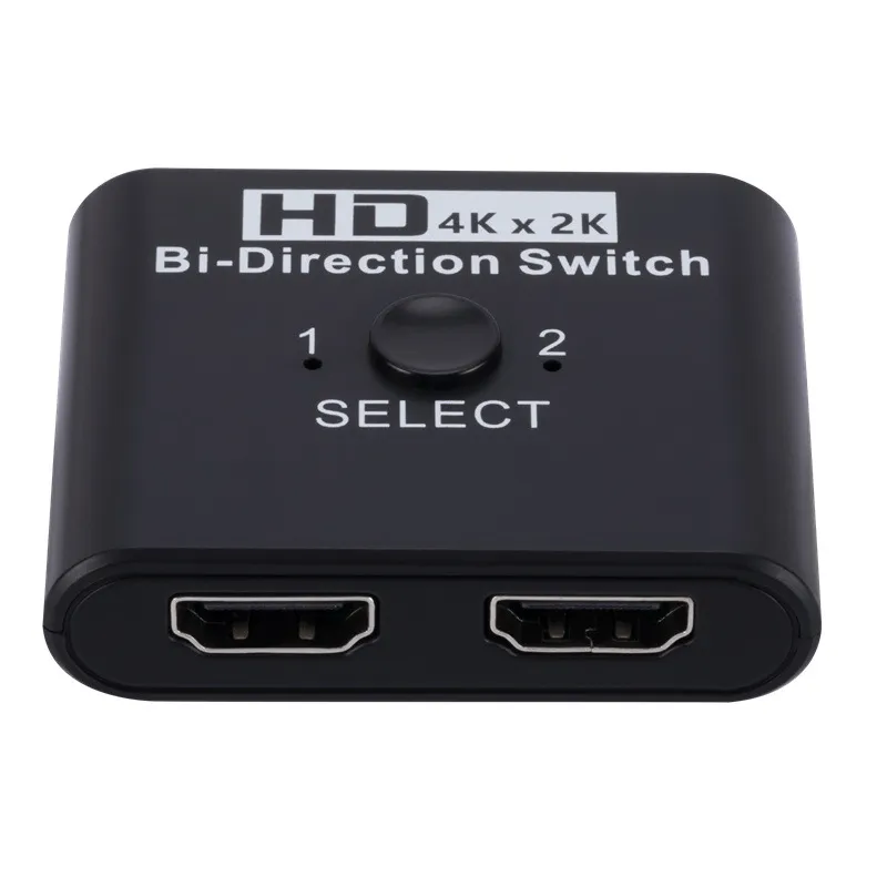 - Two-way HDMI switcher with a switch button and two LED indicators on the top. This button actually allows you to select one of the two modes: whether to send signals from one device to the other two devices or in another way. This means that the switch is bidirectional-HDMI signals can go either way.