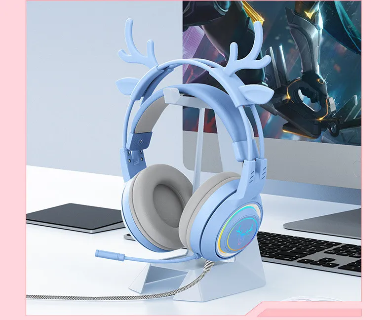 Color: pink deer ear light-emitting headphones with packaging, blue deer ear light-emitting headphones with packaging, black deer ear
