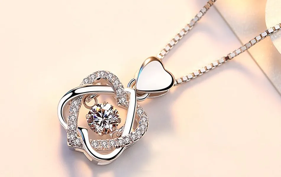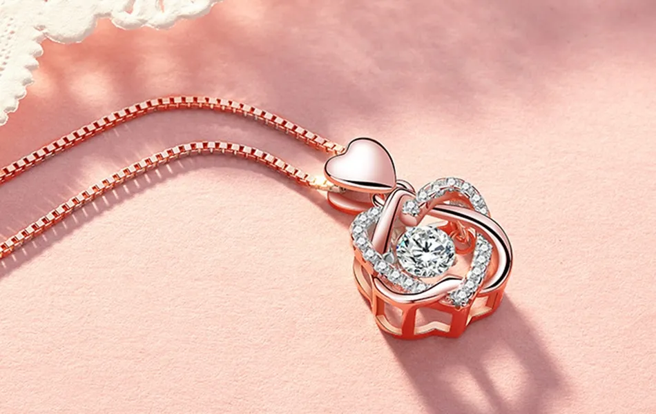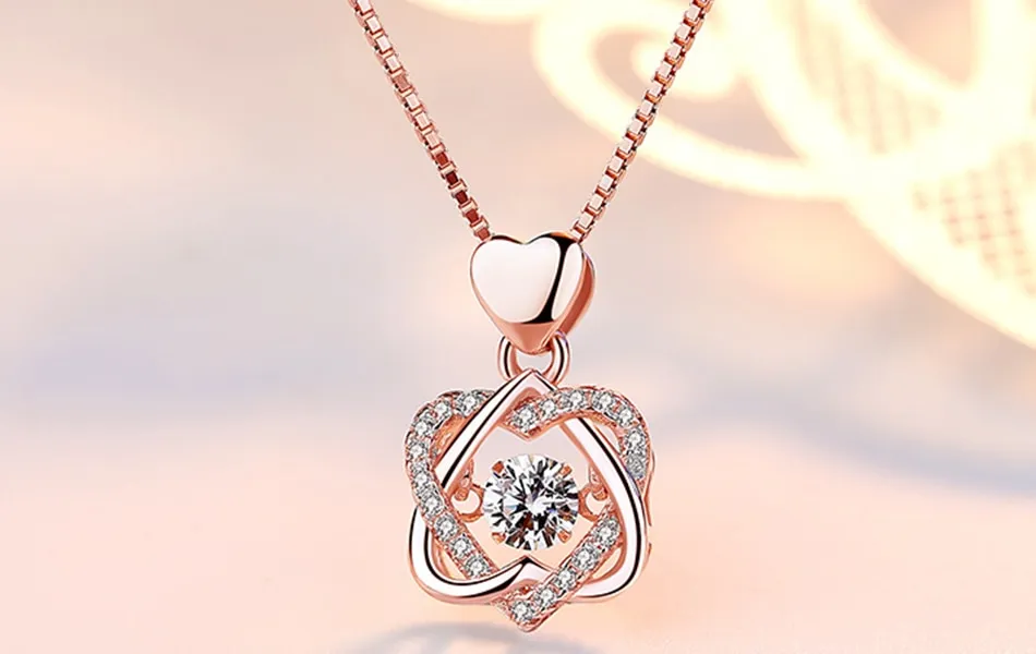 Heart Necklace Female 925 Silver Plated Rose Gold Pendant
