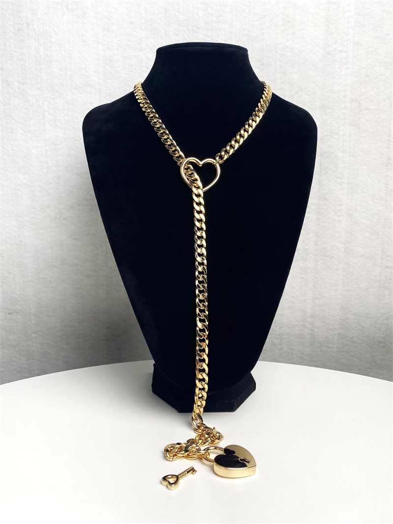 The Heart O-Ring Lock Cuban Chain Necklace features a striking heart-shaped lock core with a key detail, combining romance and rebellion in one stunning design. The Cuban chain is known for its bold, interlocking links, which provide a durable and eye-catching foundation for the necklace. The adjustable slip chain allows for a customizable fit, ensuring comfort and style for every wearer.