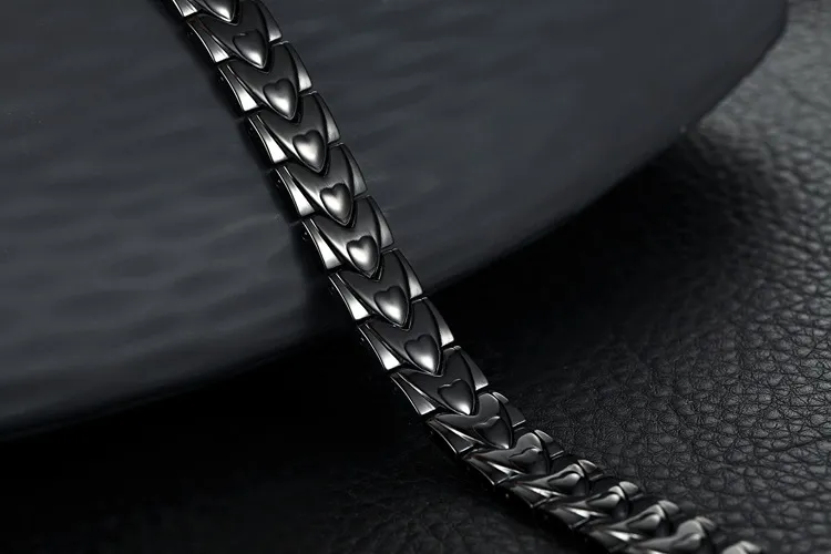 Titanium steel is known for its strength, lightweight nature, and corrosion resistance, making it the ideal material for this high-end yet durable bracelet. Meanwhile, the heart shape symbolizes love, compassion, and affection, making it a meaningful addition to any jewelry collection. The integrated magnets may offer therapeutic benefits, promoting better circulation and overall wellness.