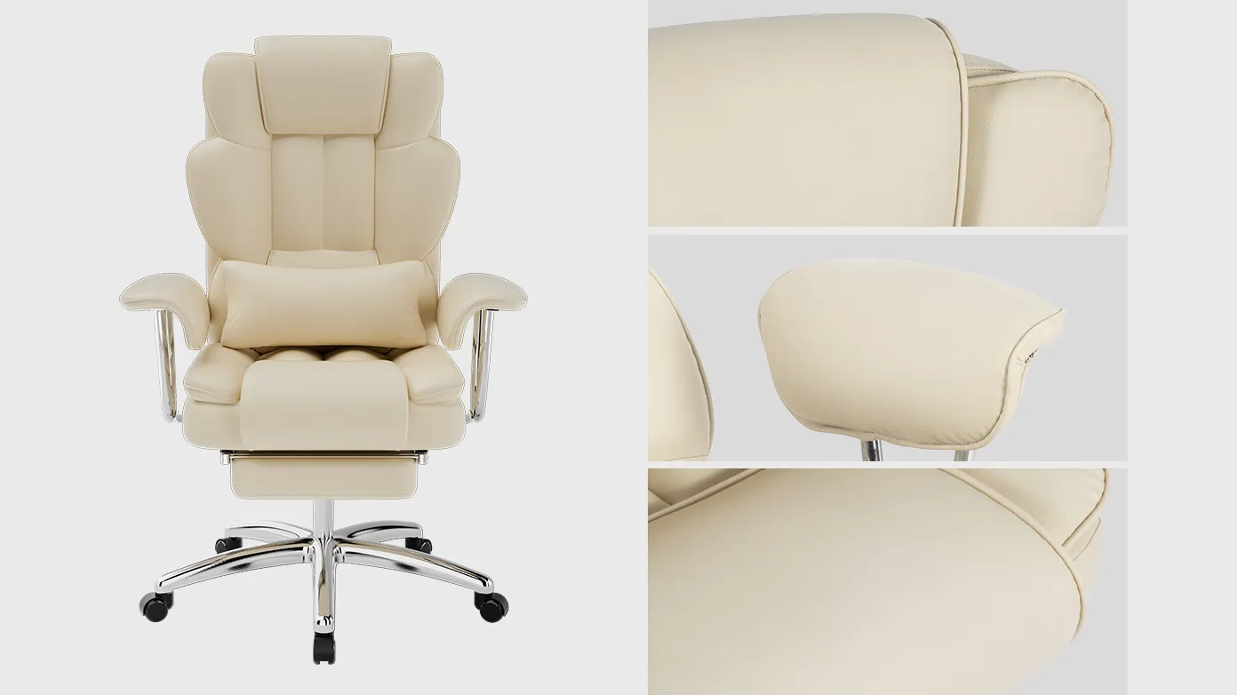 Product Name:Office Chair, Big and Tall Executive Office Chair with Footrest, Leather Computer Chair, Ergonomic Reclining Chair High Back , Large Home Office Chair (Beige)