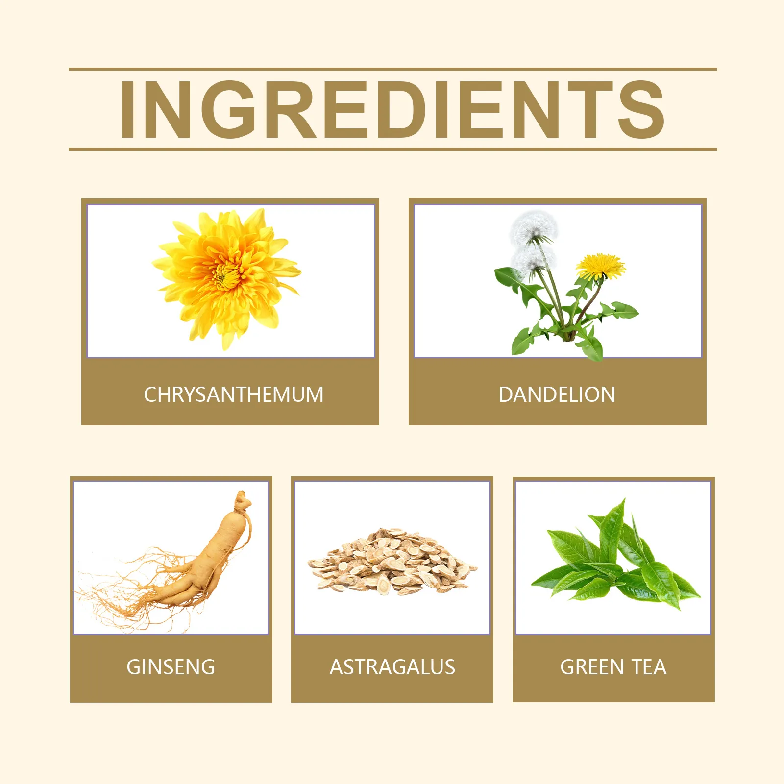 Ingredients: ginseng, astragalus root, green tea.