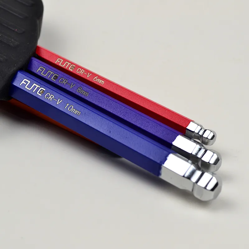 High-quality L-shaped button set, color coded, practical plastic sleeve. This ensures that the tool is a fast operating hand, even at low temperatures, ergonomic design and comfortable operation are easy to achieve. The wear-resistant chuck material ensures the safe storage and easy disassembly of the L-shaped wrench, and the hexagonal normal section provides a larger contact area with the screw head. Therefore, the cutting effect is minimized, and damage to the screw head is more or less eliminated. Even if it is difficult to install, the ballpoint pen on the long arm can work reliably. Black laser surface treatment can provide excellent surface protection, even corrosion resistance, and long service life. Laser engraving