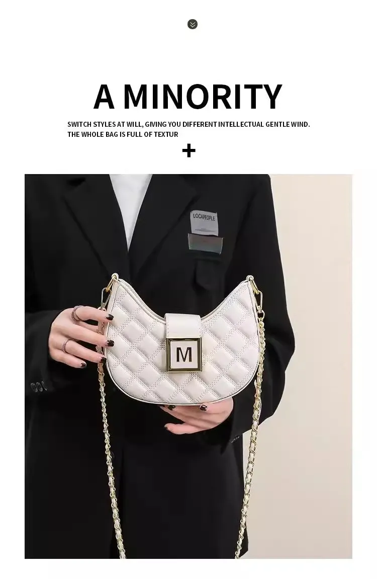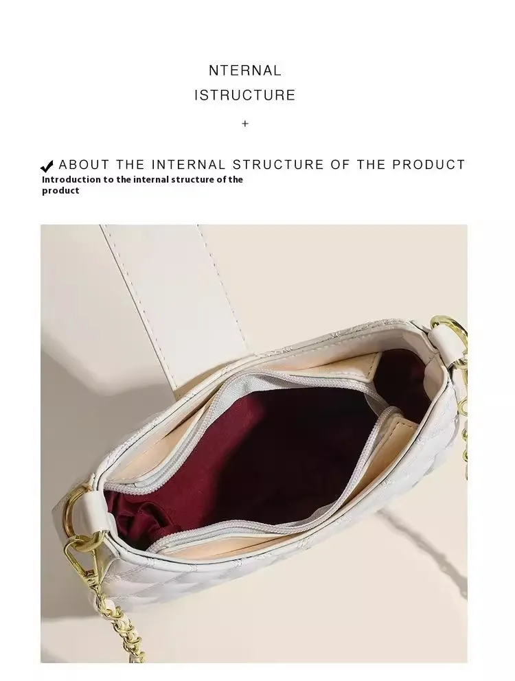 The High-End New Fashion Rhombus Single Shoulder Underarm All-Match Niche Texture Chain Messenger Bag is the ultimate accessory for women who appreciate refined elegance and versatile design. With its distinctive rhombus texture and chic chain accents, this bag is a timeless piece that effortlessly enhances any outfit. Perfect for formal occasions, casual outings, or evenings out, it’s a must-have addition to your collection.