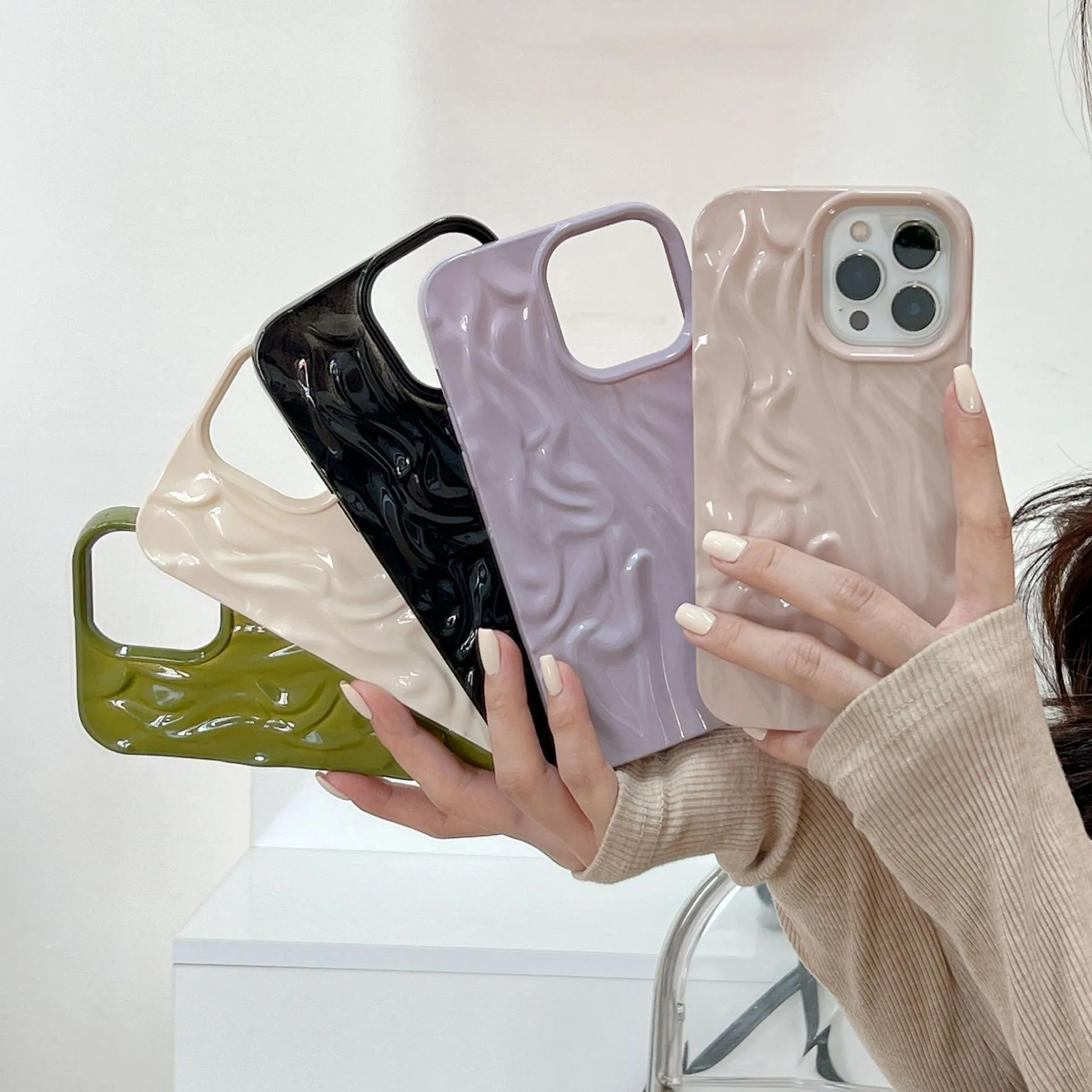 High-grade Ins Solid Color Water Ripple Silicone Phone Case