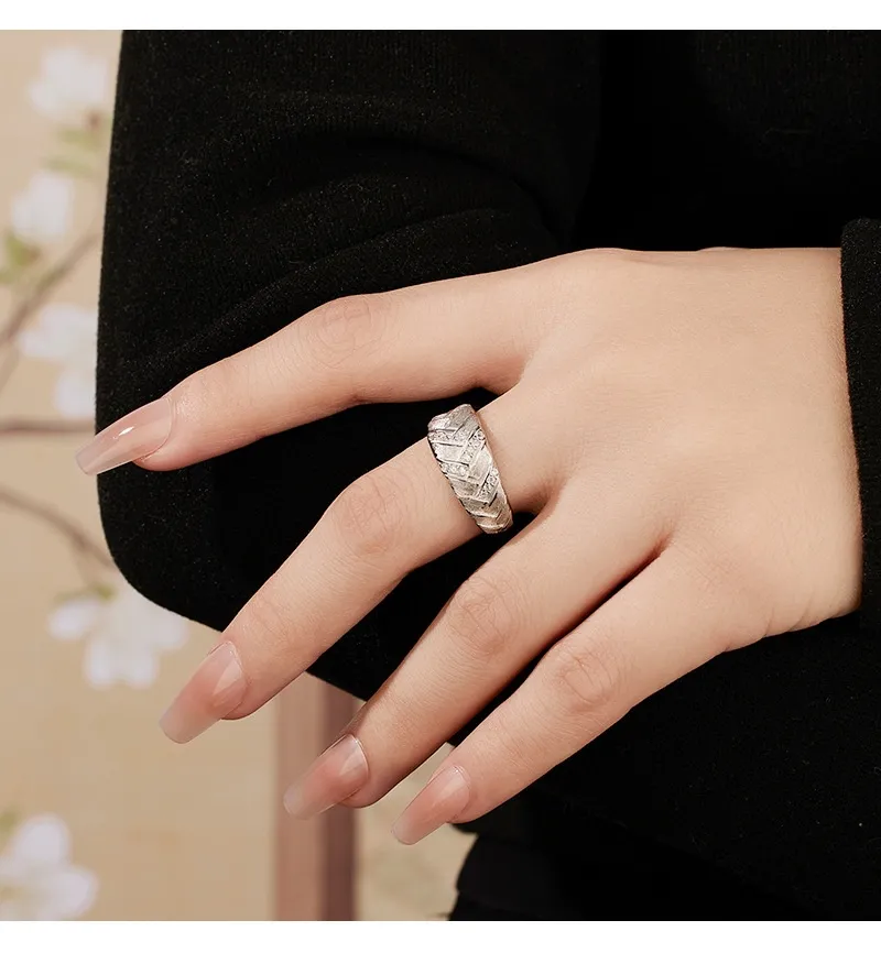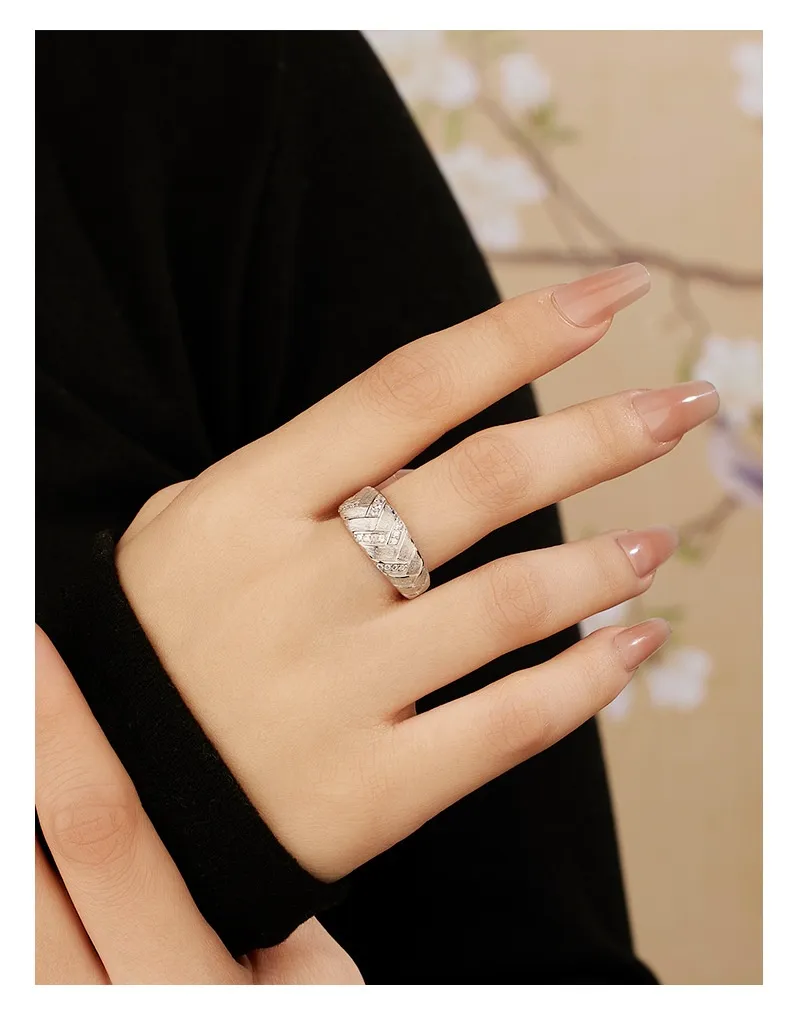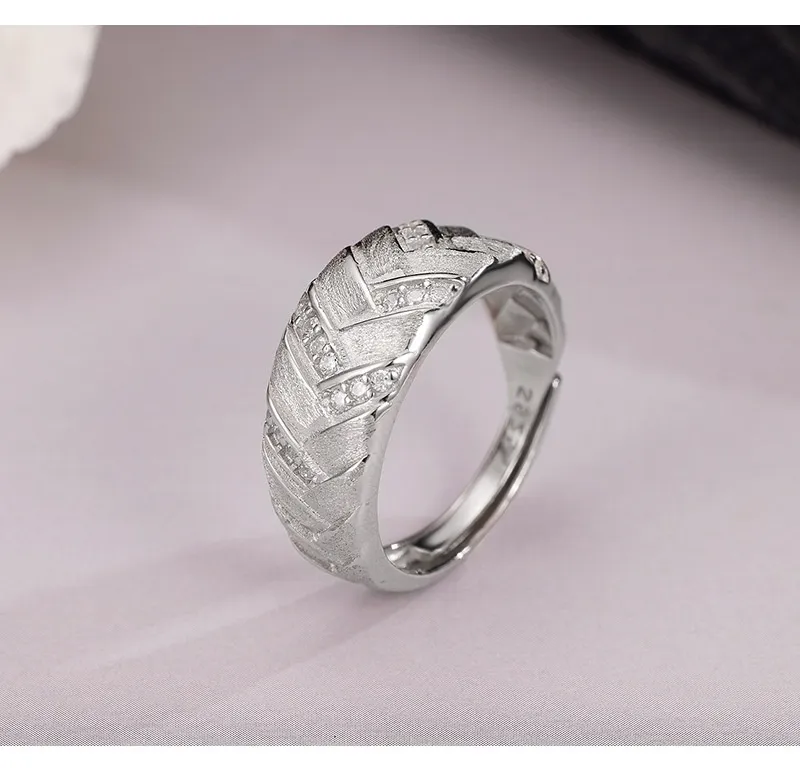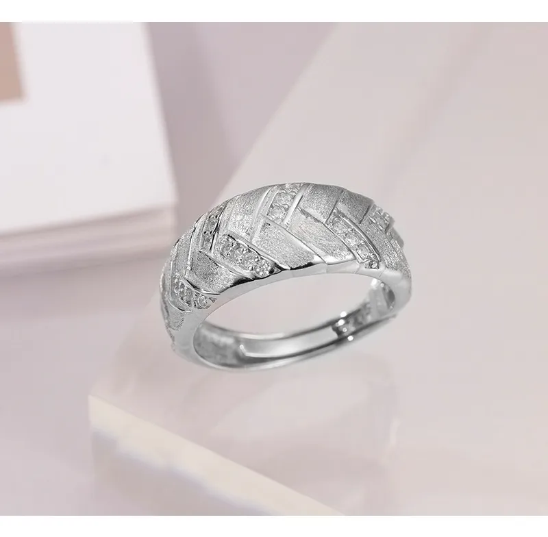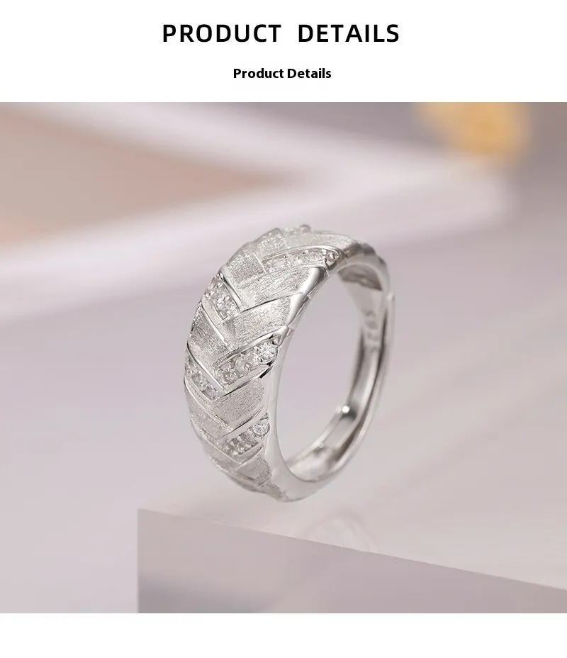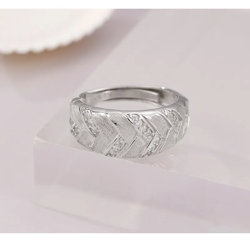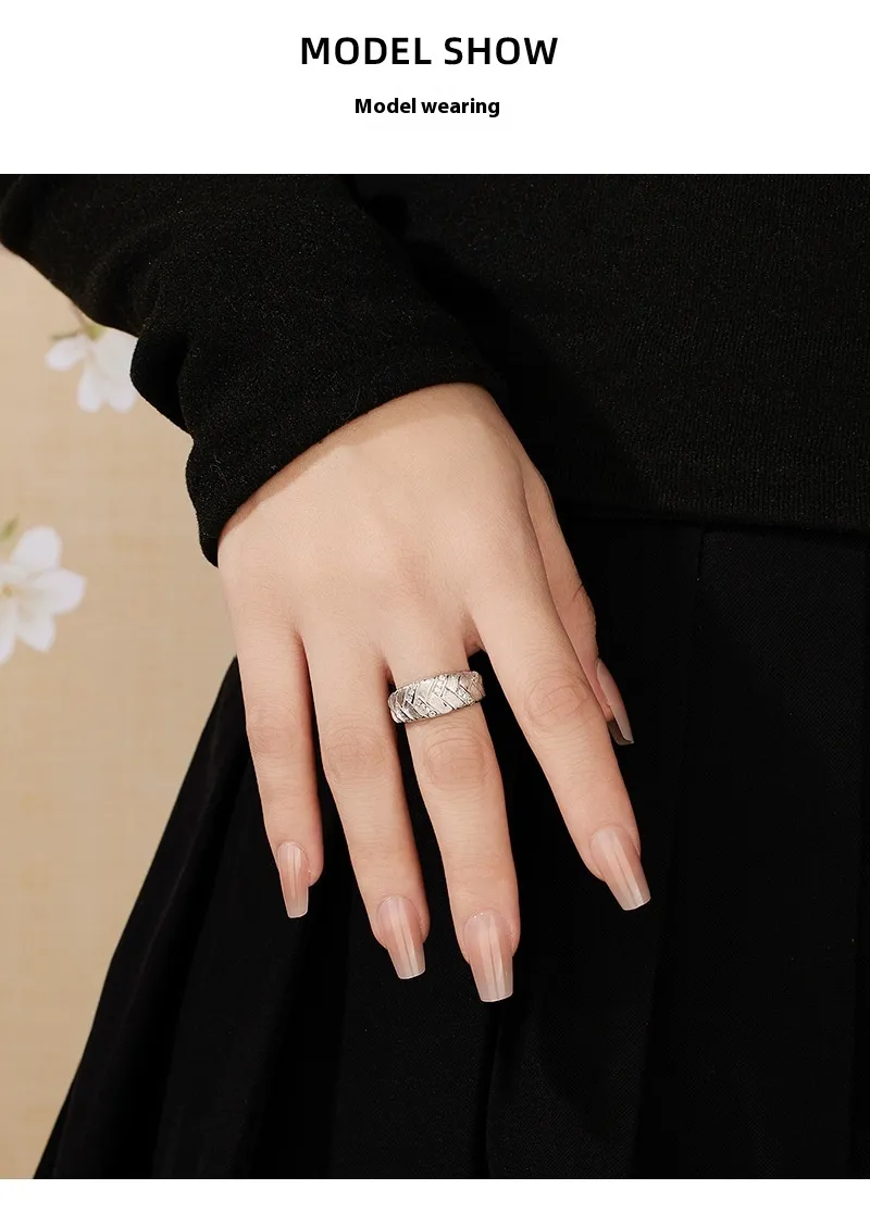 High-grade Light Luxury Woven Brushed Ring Women's 925 Sterling Silver Adjustable