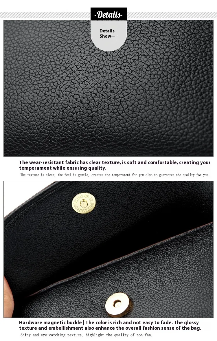 Crafted from high-grade synthetic leather, this bag offers durability, a smooth texture, and a luxurious feel, ensuring long-lasting use.