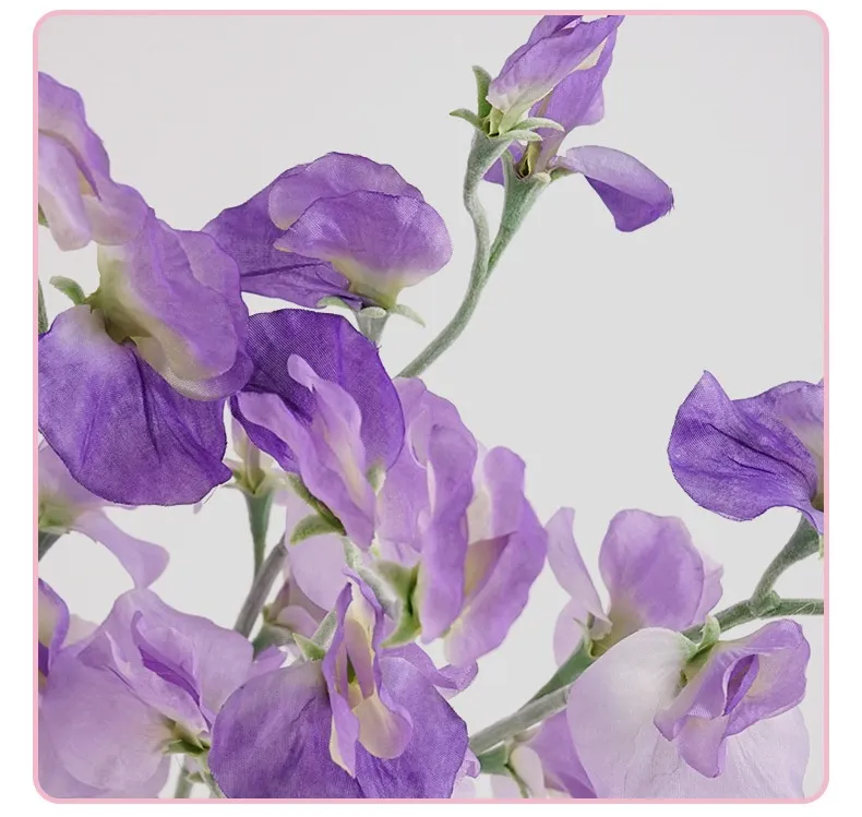 Its durability also makes it a practical décor option for events such as weddings, corporate functions, exhibitions, and seasonal displays. Unlike fresh blooms that wither after a few days, the artificial pea flower stem maintains its elegance for years, offering both cost savings and long-term decorative value.