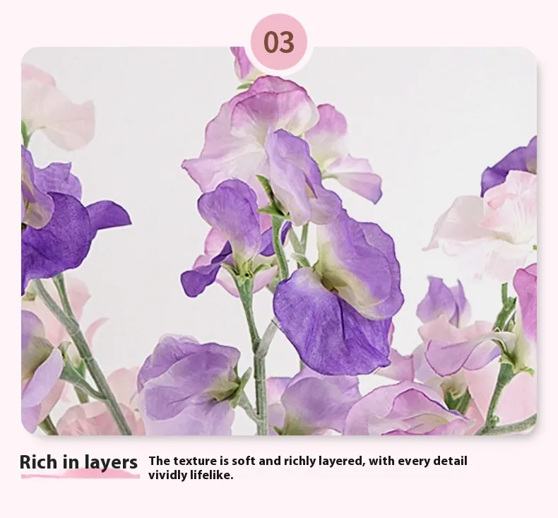 Unlike fresh flowers that last only a few days, this artificial pea flower stem remains beautiful season after season. It’s an excellent choice for busy households, rental properties, and event planners looking for a reliable decorative element.