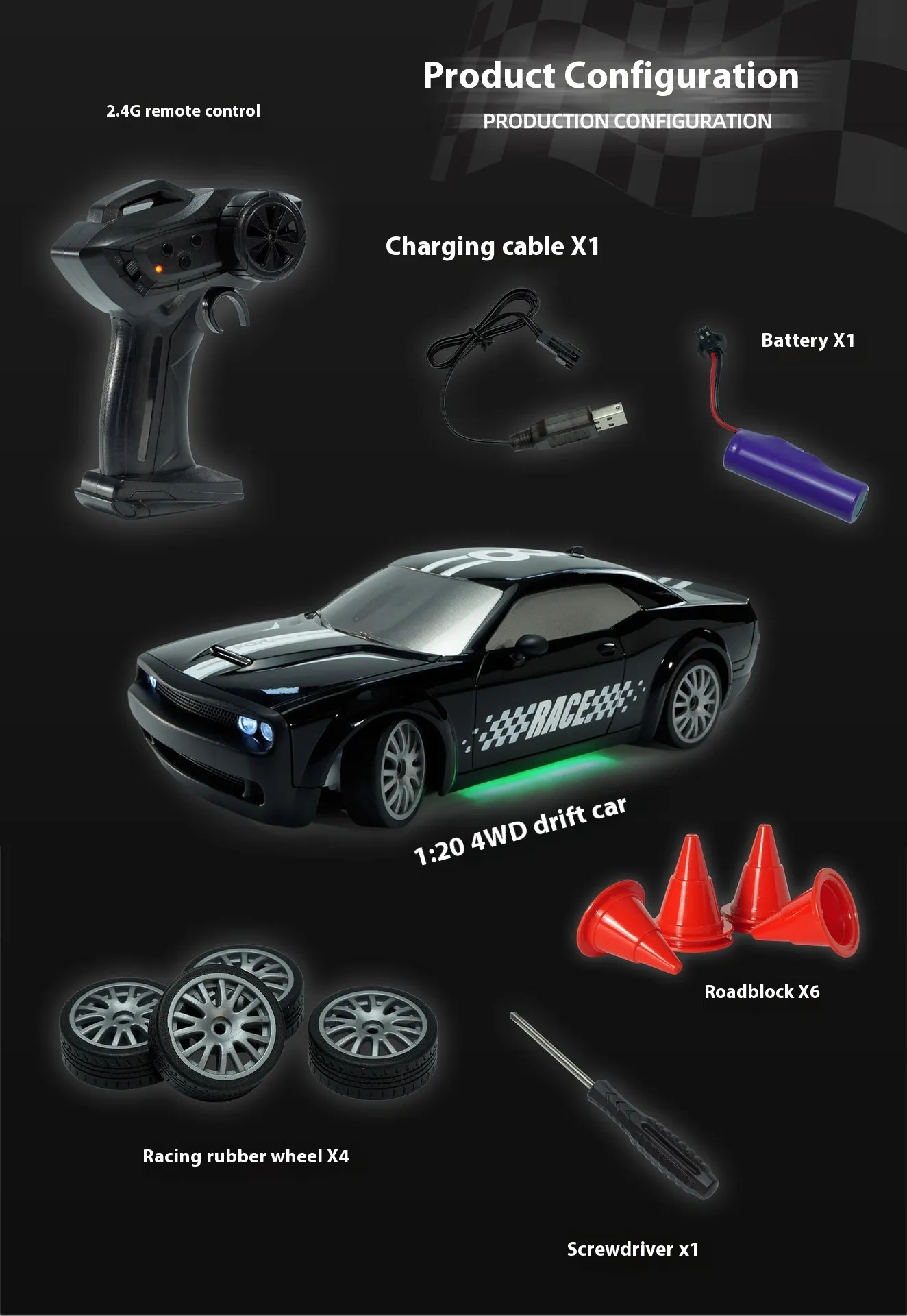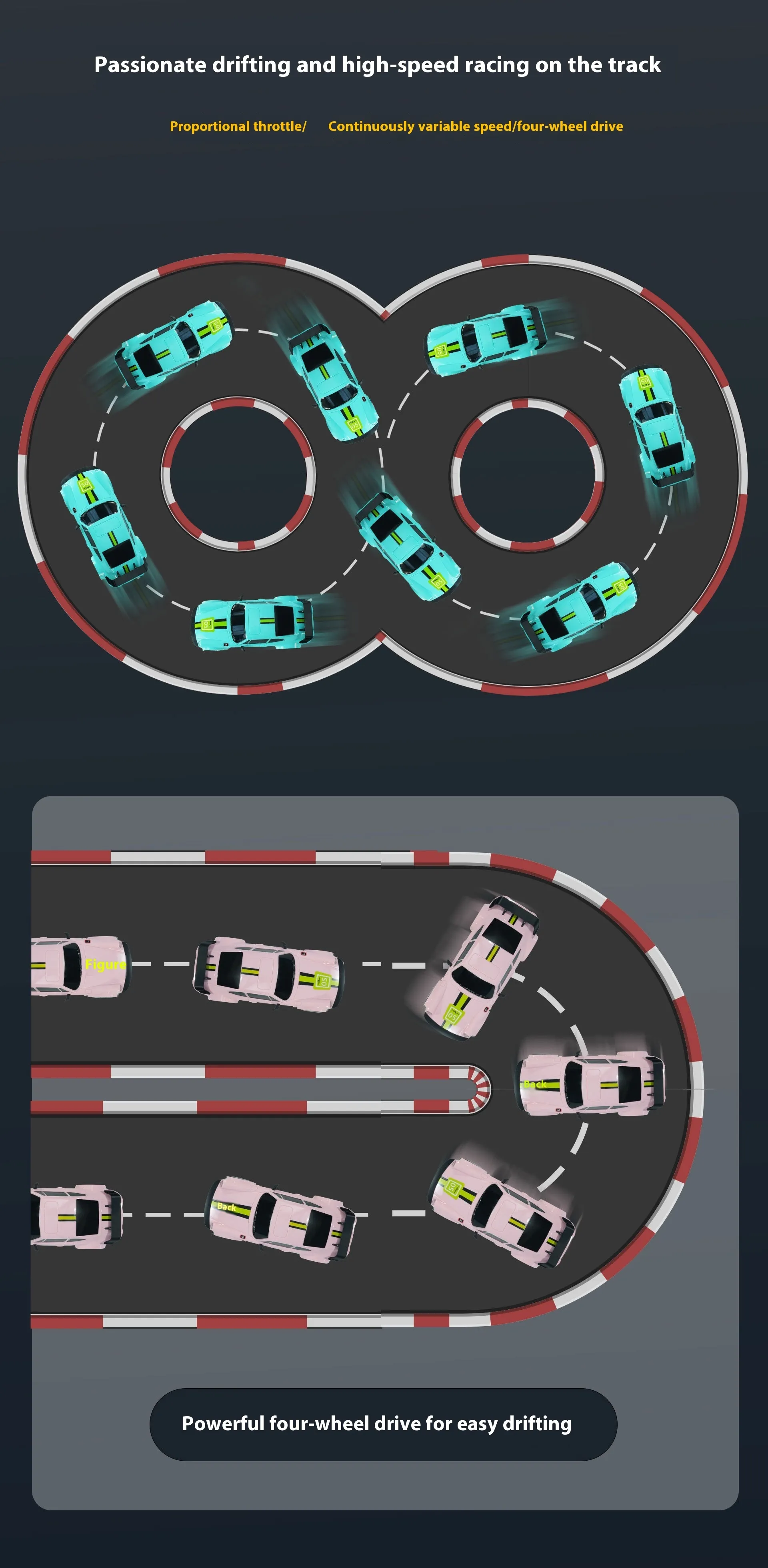 Color: gray-four-wheel drift car, black-four-wheel drift car, pink-four-wheel drift car, blue-four-wheel drift car