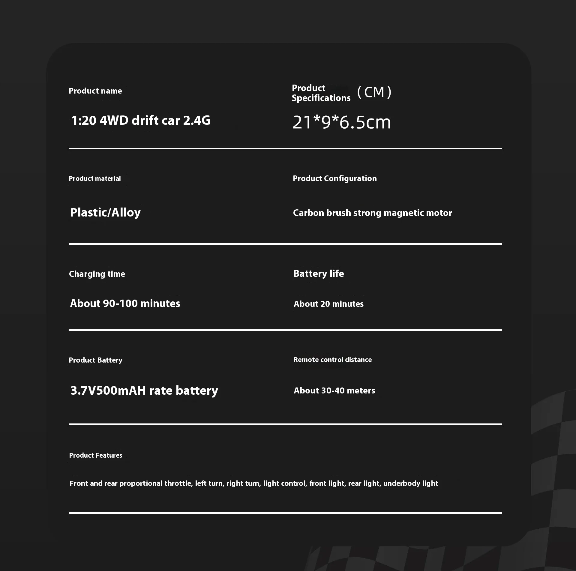Features: four-wheel drive remote control drift car