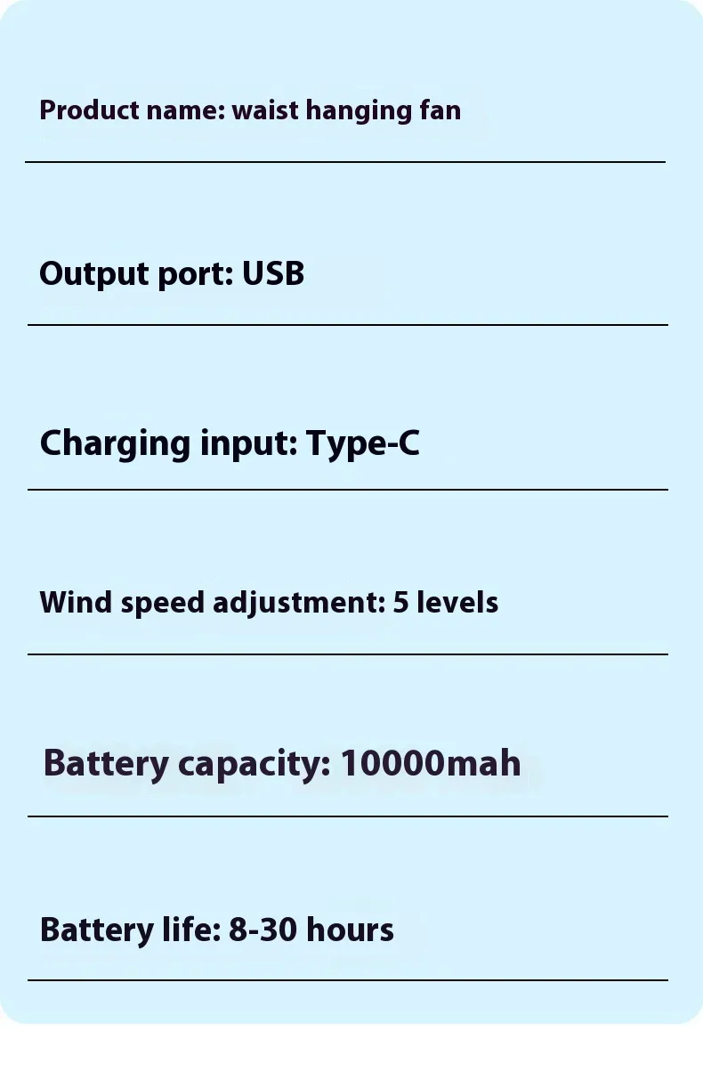 High Speed Outdoor Camping Long Endurance Portable Portable Waist Cooling Halter Fan